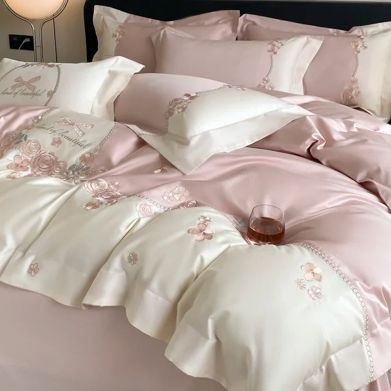 4pcs/Set Class A Grade High-end 200s Long-staple Pure Cotton Embroidery Quilt Covers Pillowcases Sheet Bedding Set