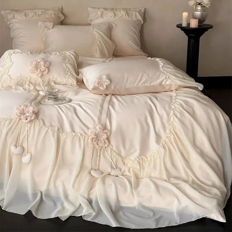Apricot Color Princess Wedding Bedding Set 1000TC Egyptian Cotton Lace Ruffles Duvet Cover Bed Sheet/Fitted Sheet Pillowcases