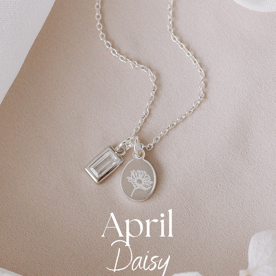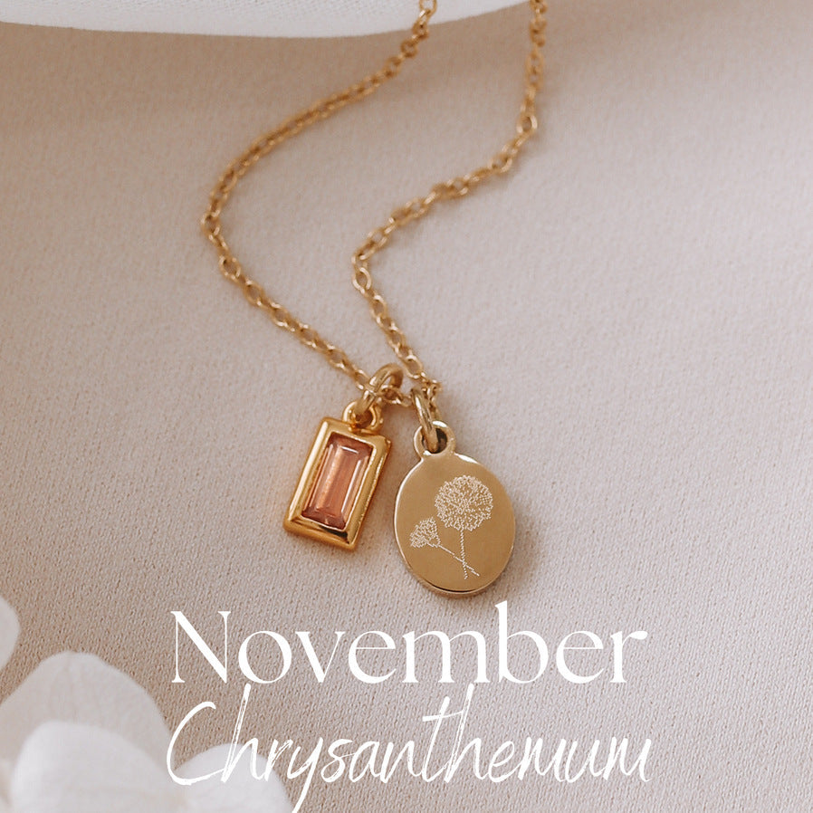 Birthstone Necklace Ins Small Flower Titanium Steel Necklace For Birthday