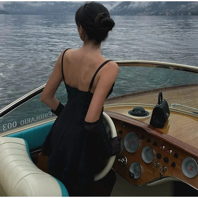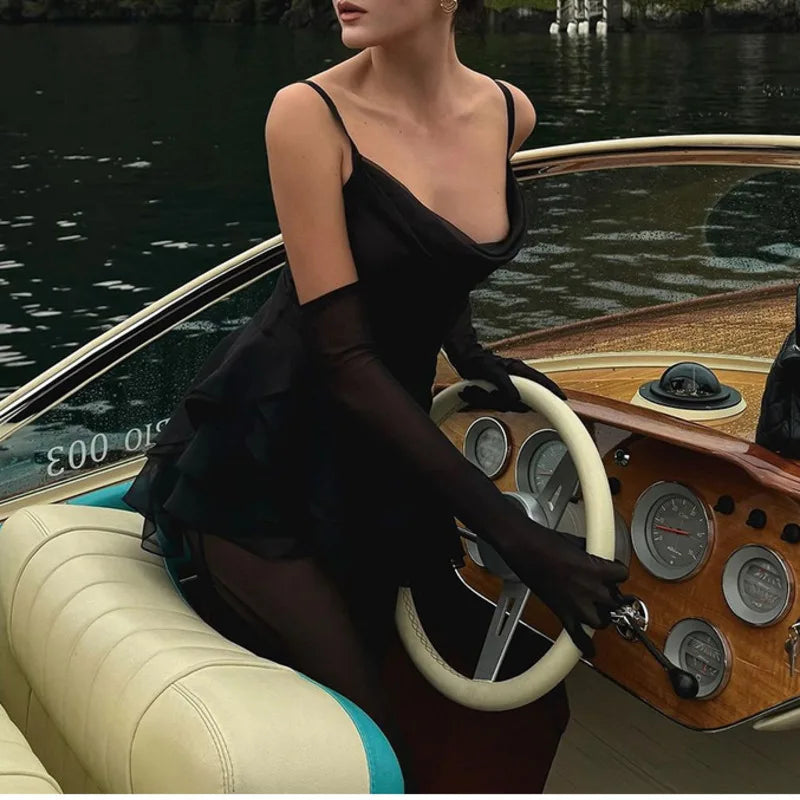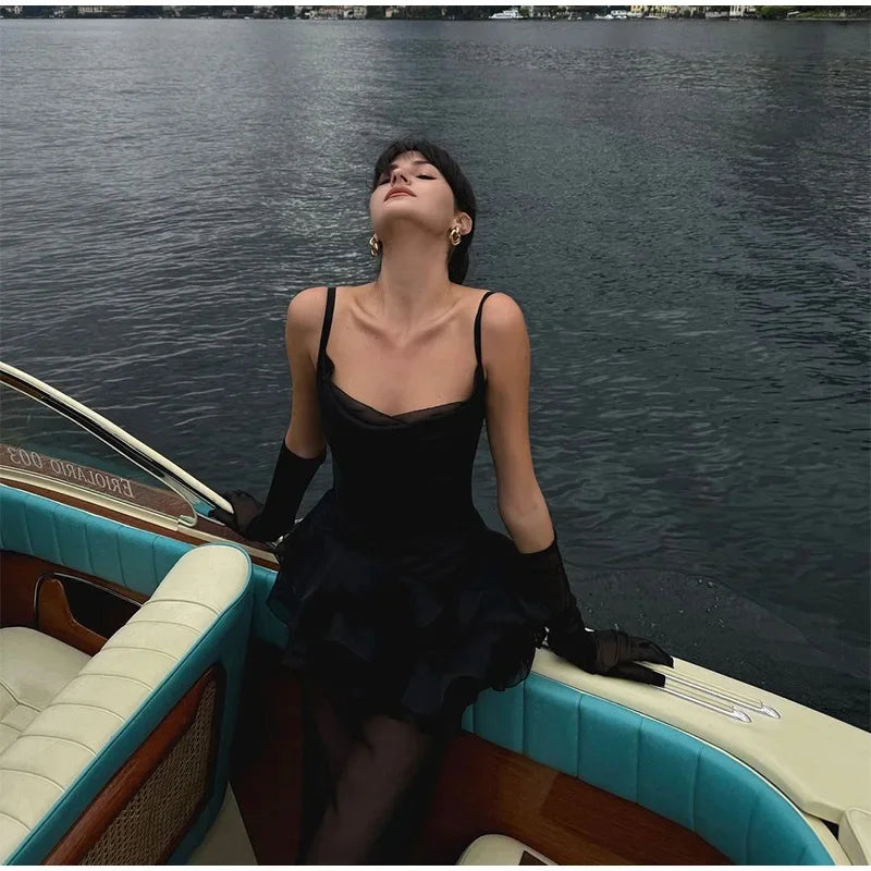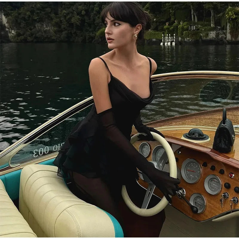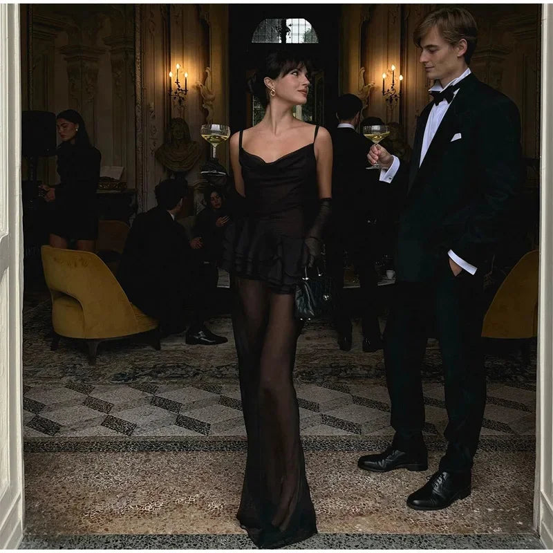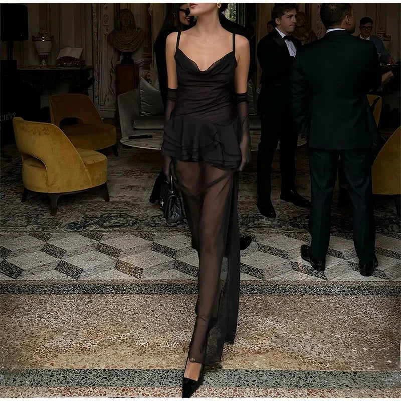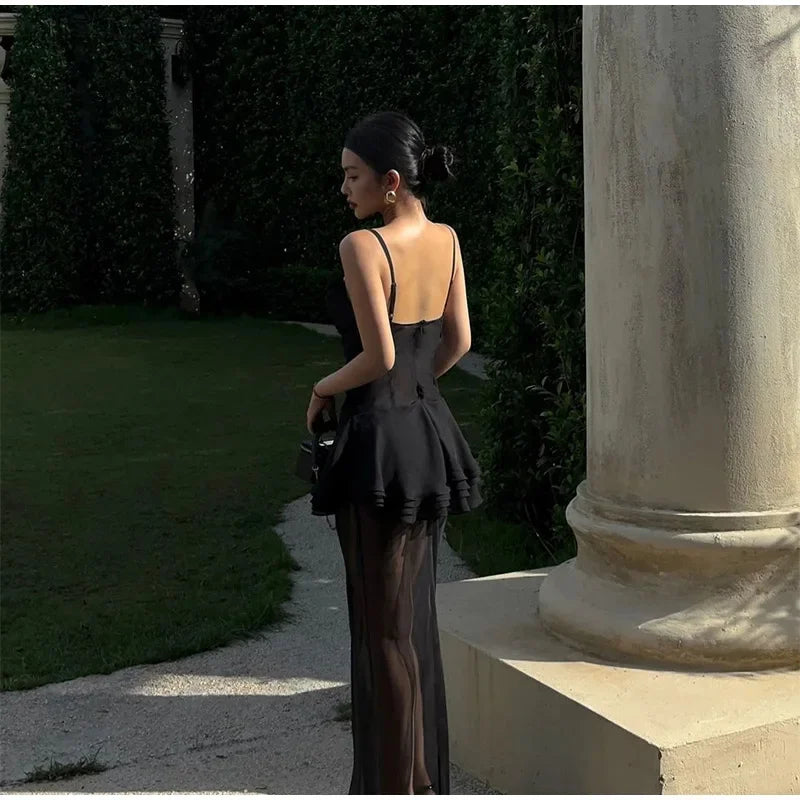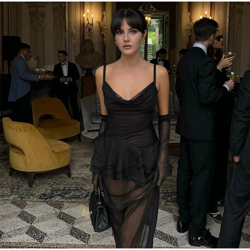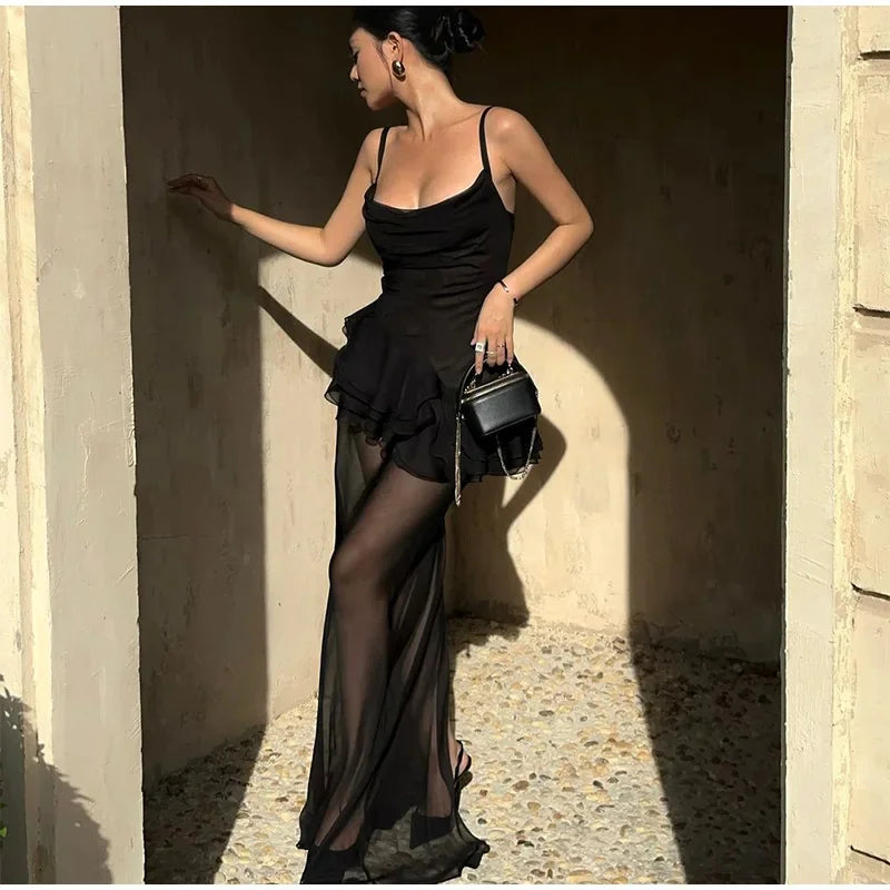 Black Mesh Frill Cami Top And Maxi Skirt Set