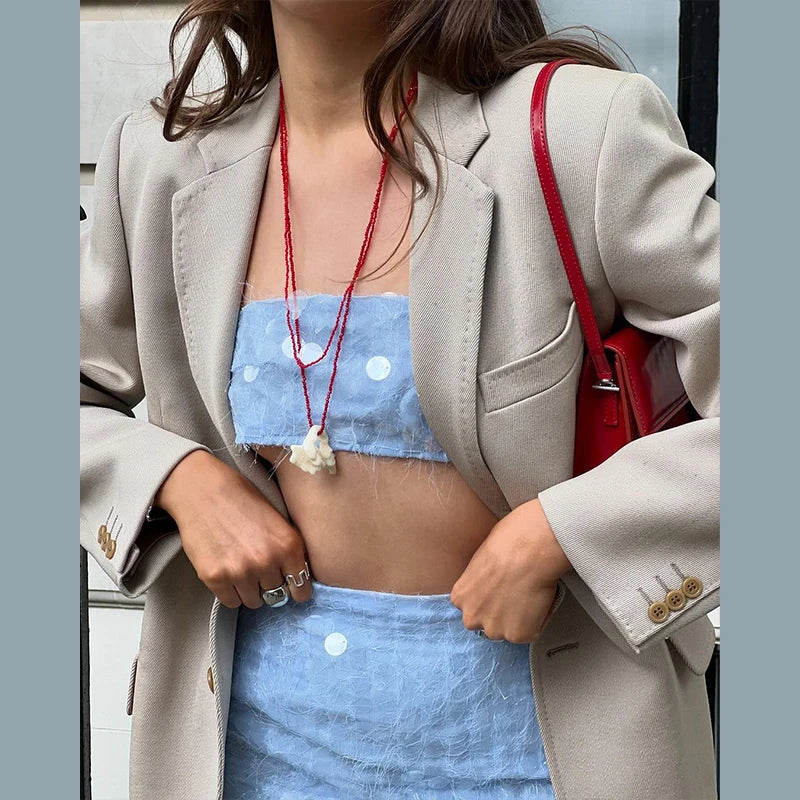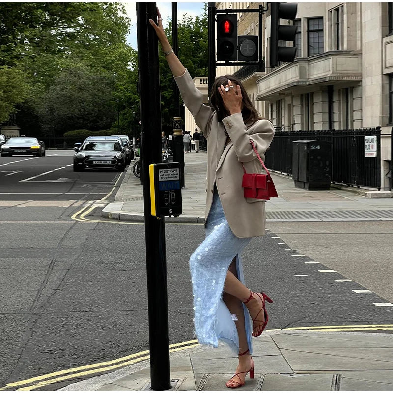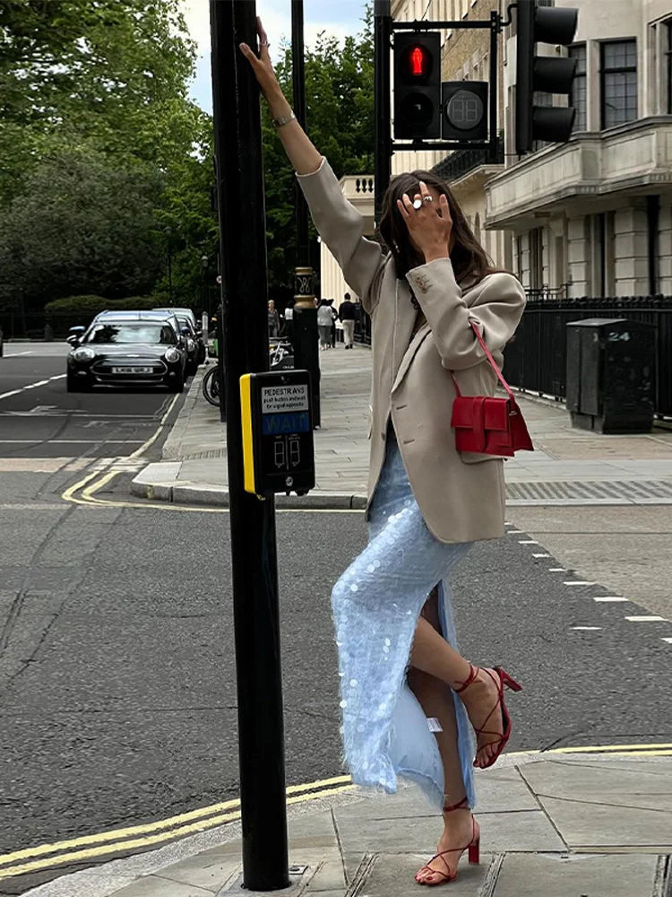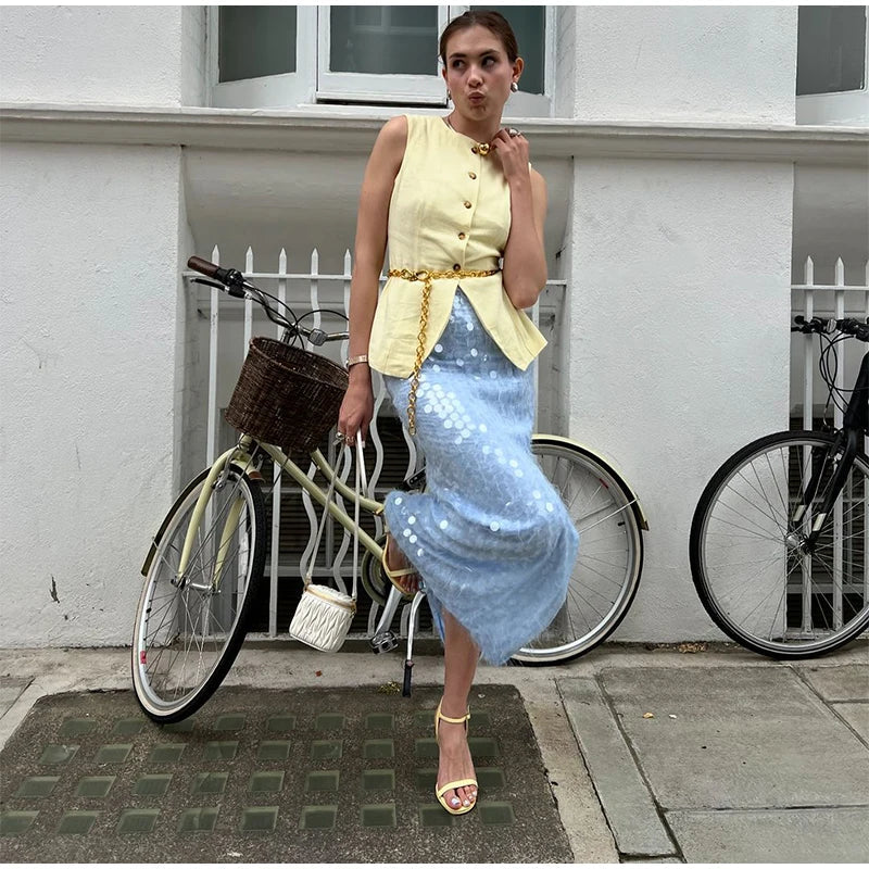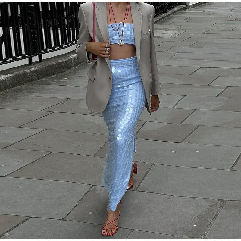 Blue Sequin Tube Top And Maxi Skirt