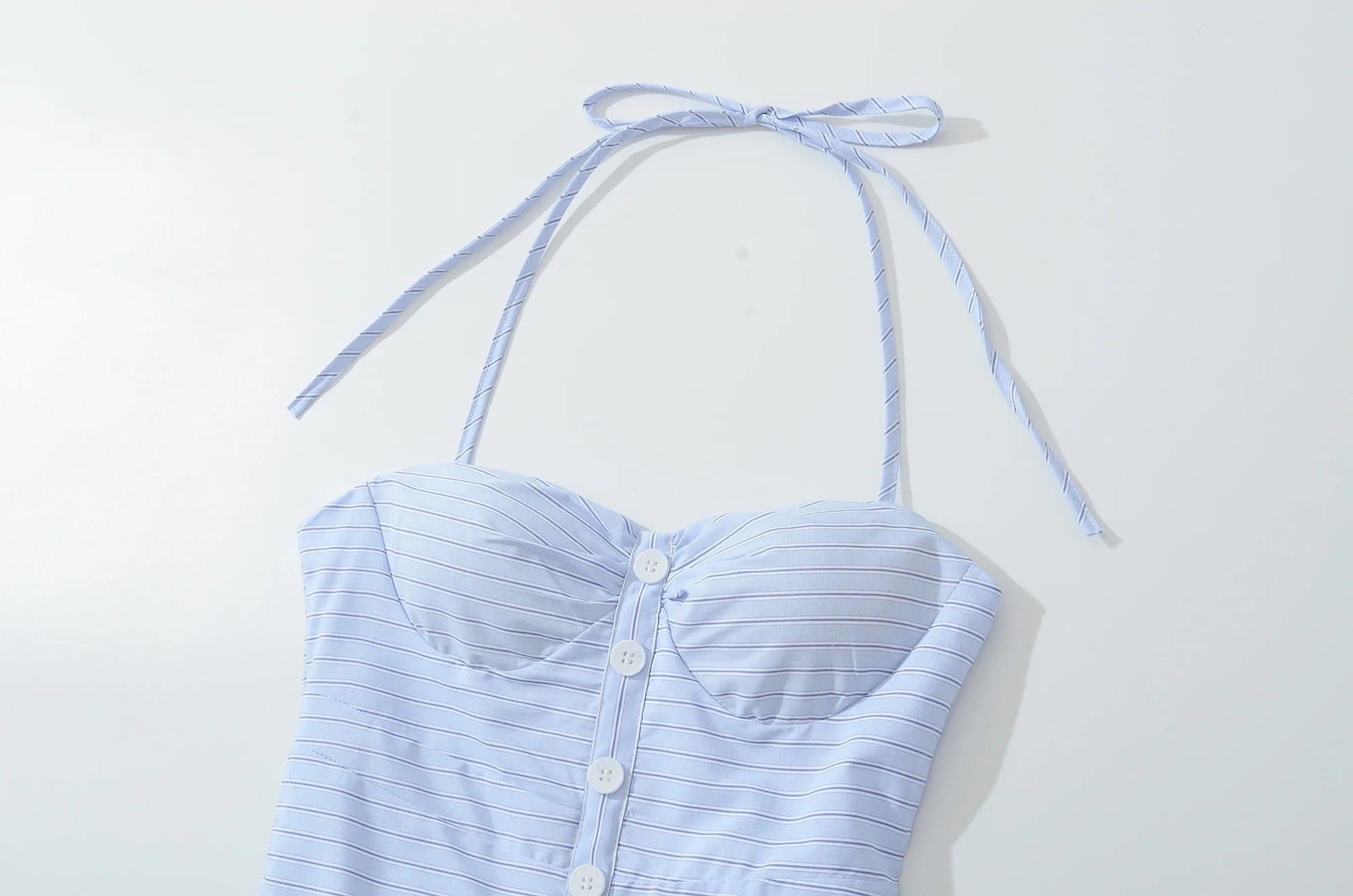 Blue Striped Padded Corset Bow Halter Mini Dress
