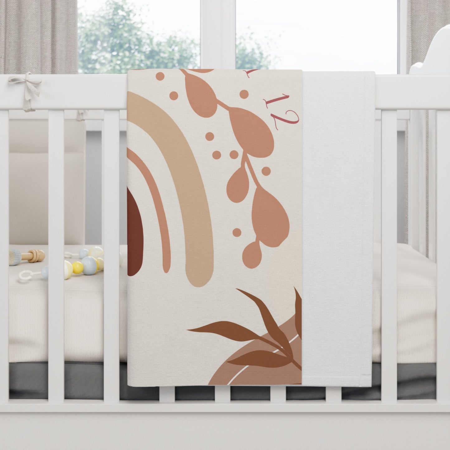 Boho Blush Rainbow Themed Soft Fleece Milestone Blanket, Boys Monthly Growth Tracker, Personalized Baby Blanket, Baby Shower Gift