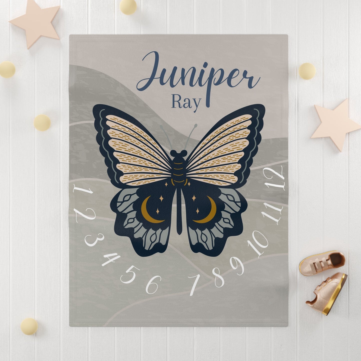 Boho Butterfly Themed Soft Fleece Milestone Blanket, Boys Monthly Growth Tracker, Personalized Baby Blanket, Baby Shower Gift, Newborn Baby