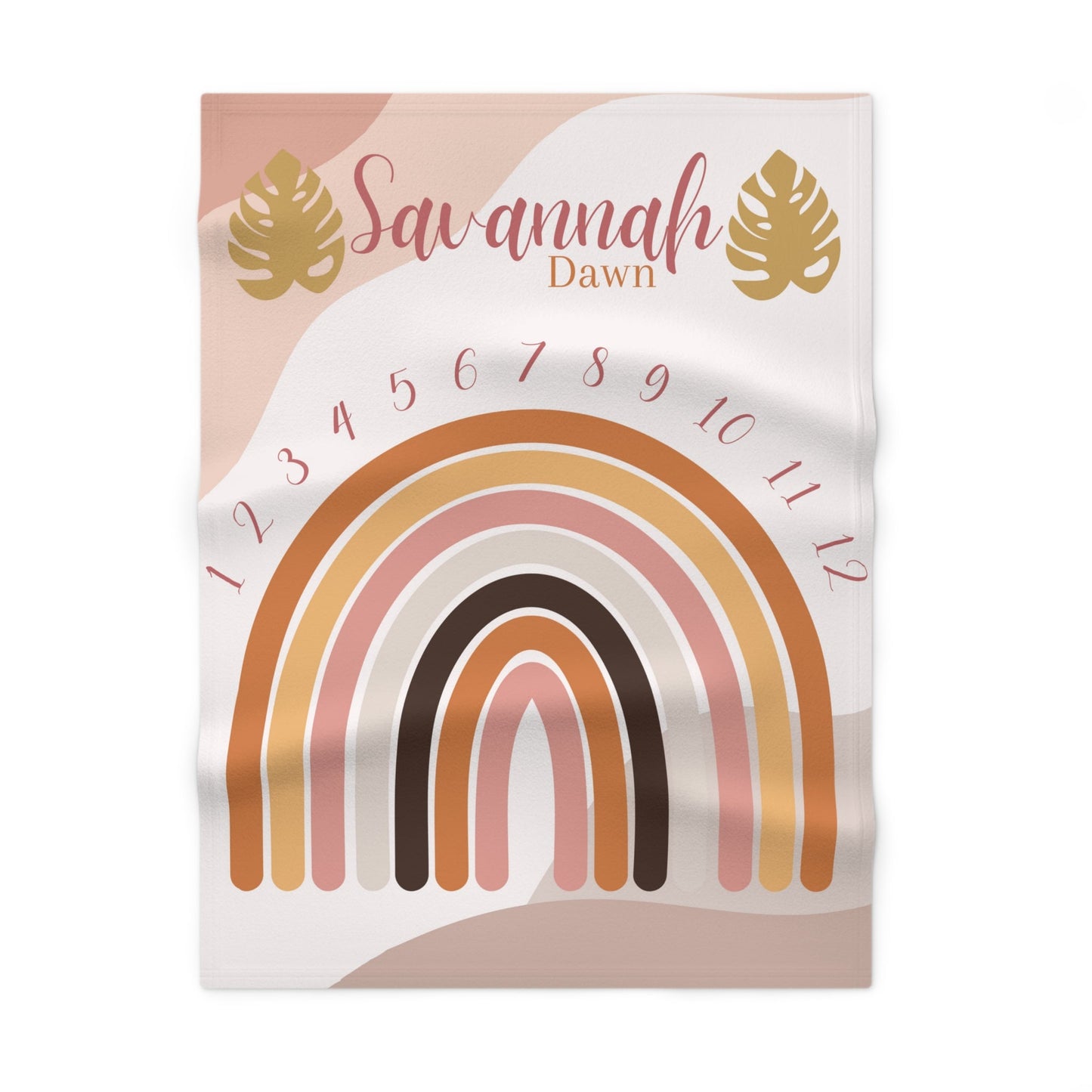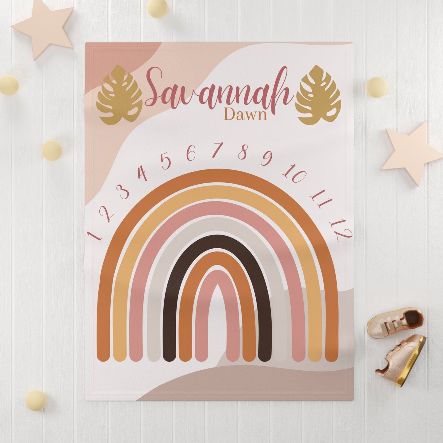 Boho Rainbow Themed Soft Fleece Milestone Blanket, Boys Monthly Growth Tracker, Personalized Baby Blanket, Baby Shower Gift
