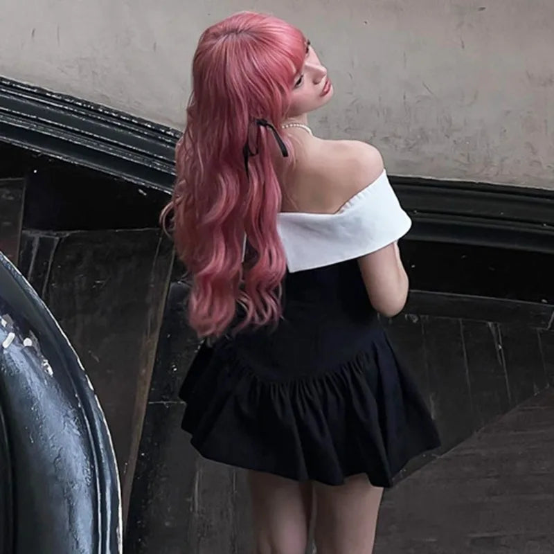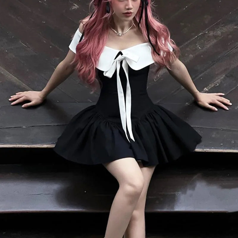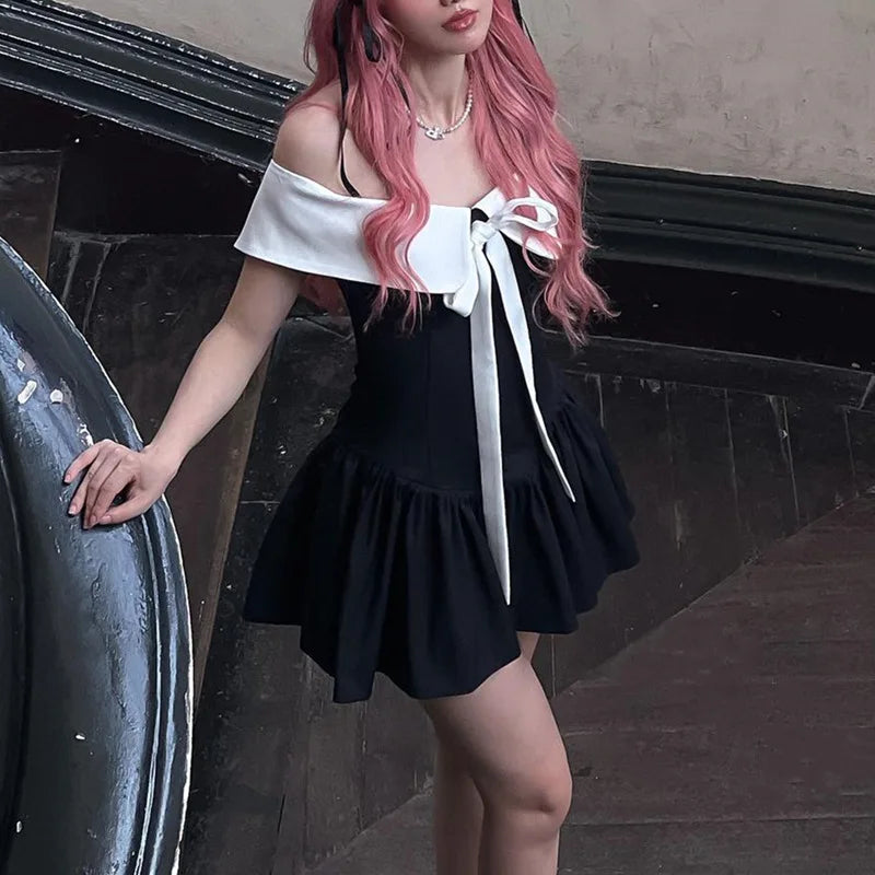Bow Lace-up Black Off Shoulder Mini Dress
