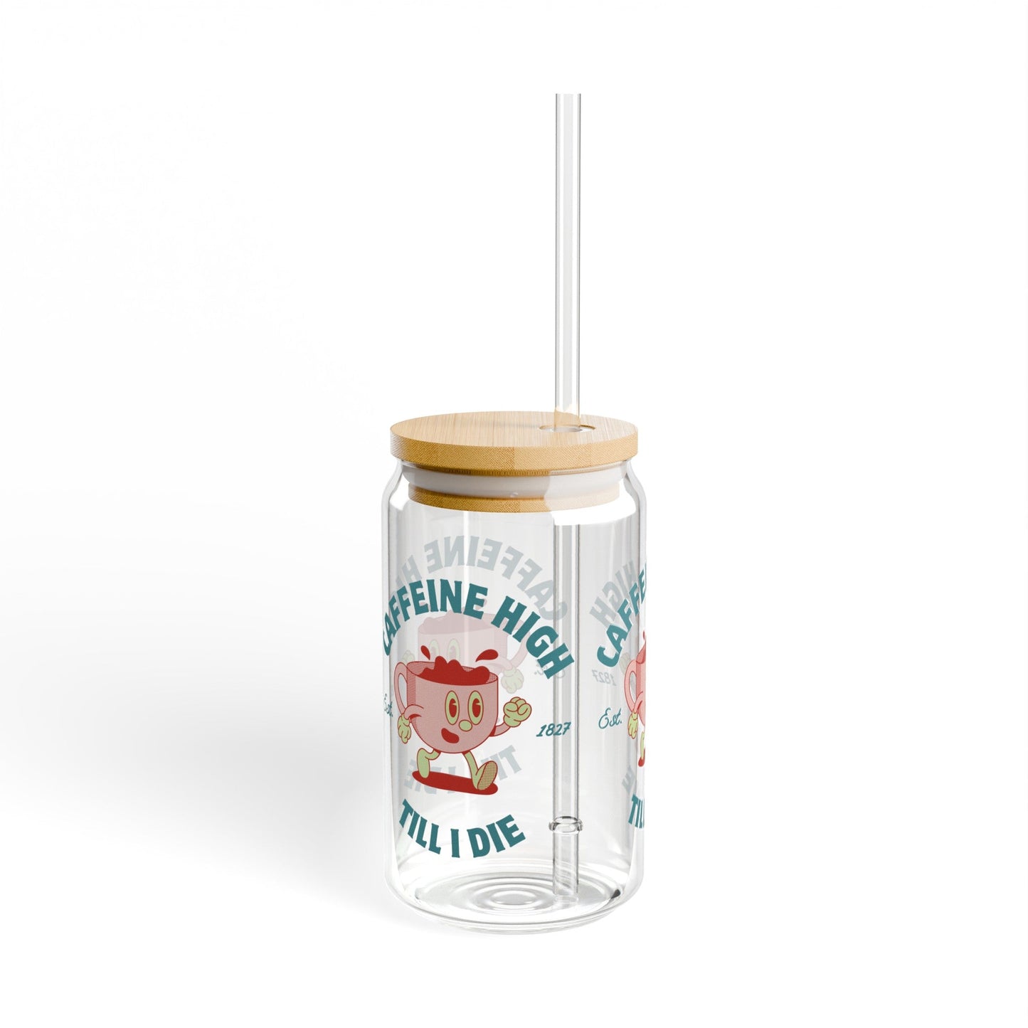 Caffeine High Till I Die Cartoon Iced Coffee Cup Sipper Glass, 16oz