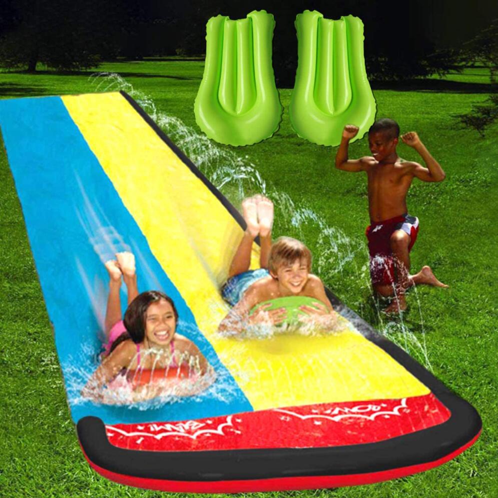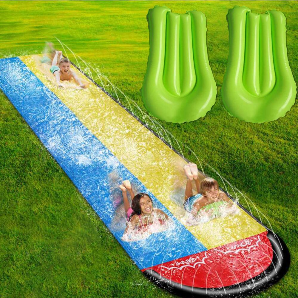Children Double Surf Water Slide Outdoor Garden Racing Lawn Water Slide Spray Summer Water Games Toy
