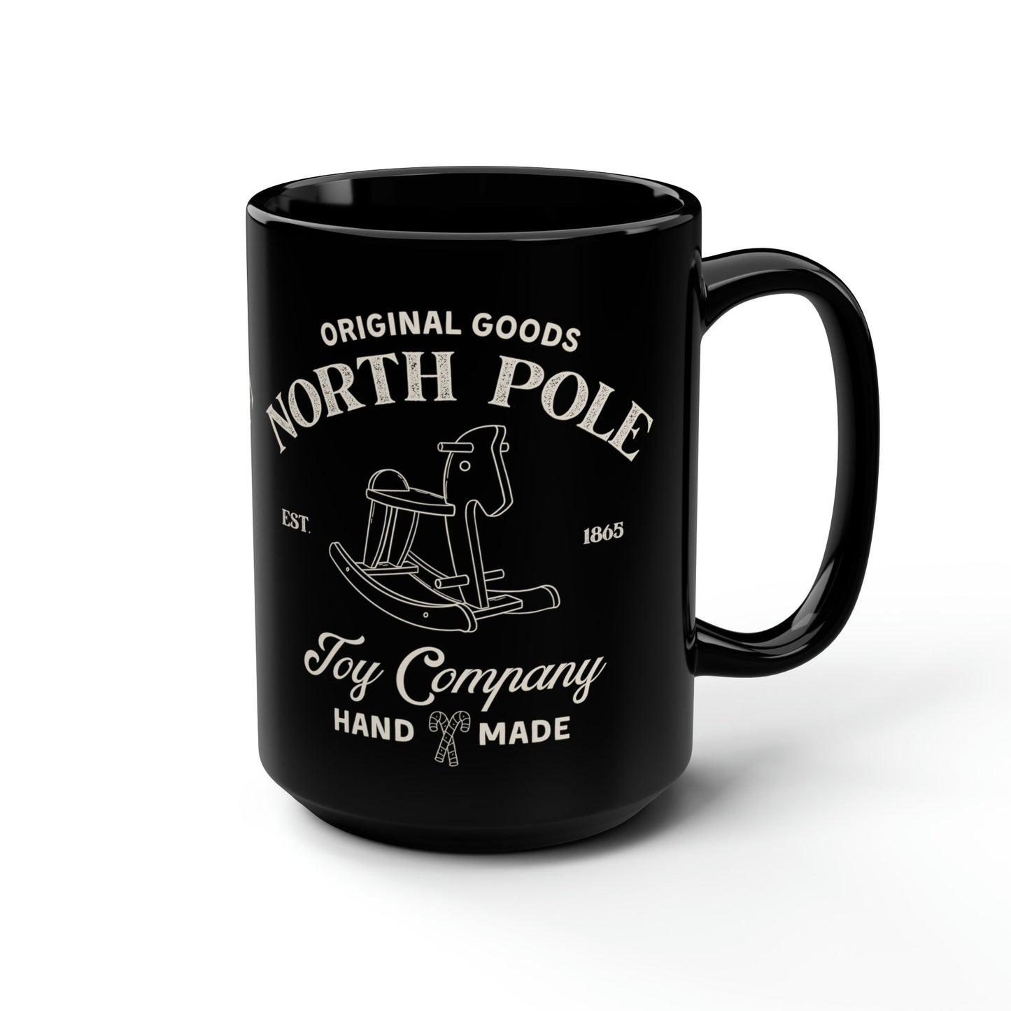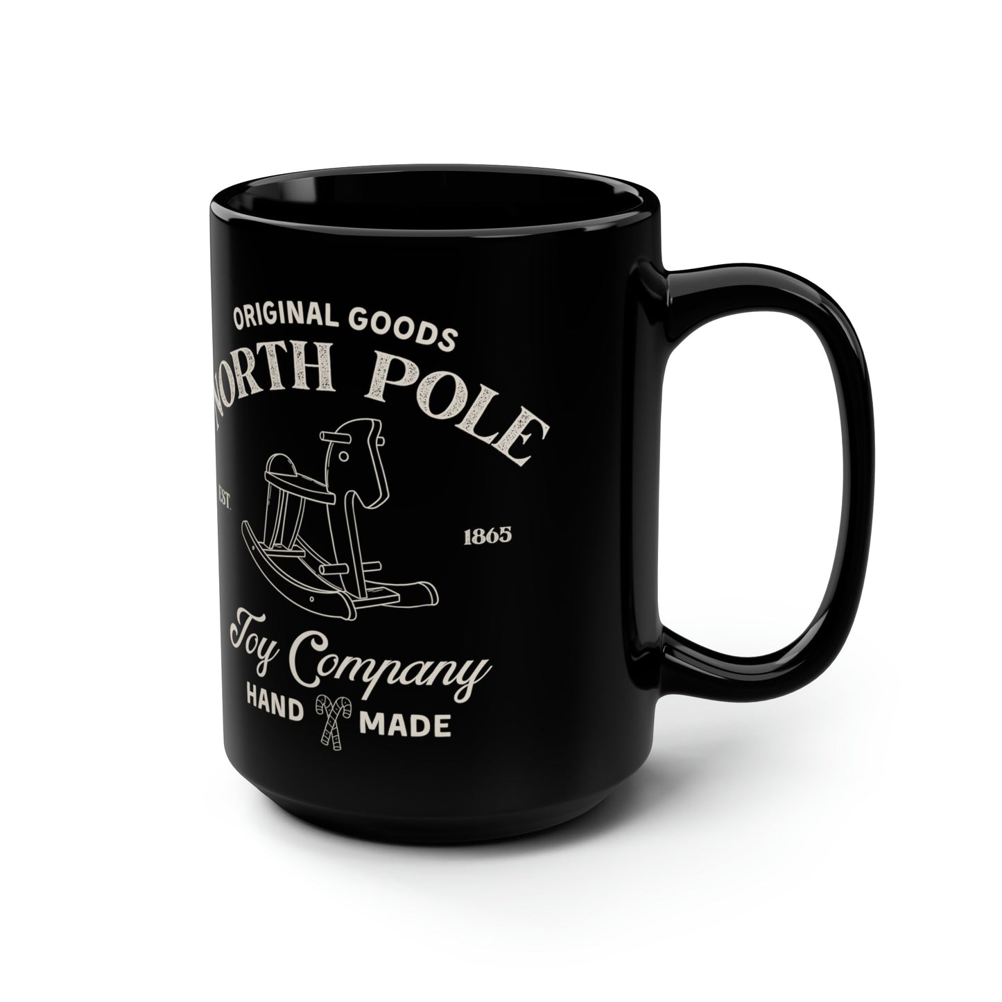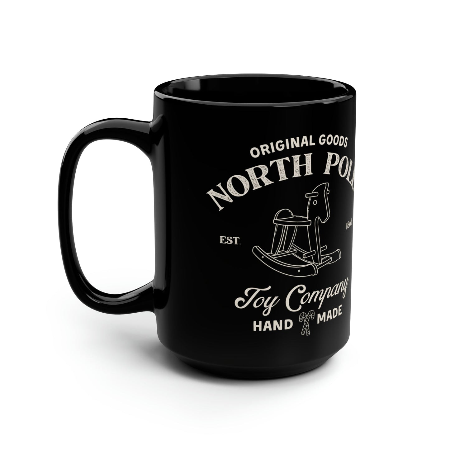 Christmas Black Mug, 15oz, North Pole Toy Company Mug, Edgy Christmas Hot Chocolate Mug