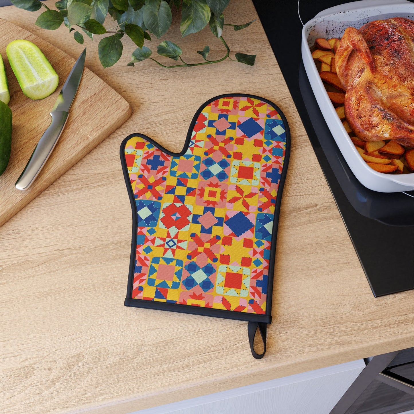 Personalized oven mitts like these are perfect for adding a splash of style to any kitchen. Add your original designs and sell them to cuisine connoisseurs around the world. These mitts sport a metallic. 100% cotton back to protect hands from nasty burns. They also feature a fabric loop for hanging and easy storage..: Materials: 100% polyester (front. lining. fill). 100% metallic coated cotton (back). 100% cotton (trim).: One size: 12'' × 8'' (30.5cm × 20.3cm).: One side print.: Hanging loop.: Heat insulation.: Sewn in label.: Blank product sourced from China
