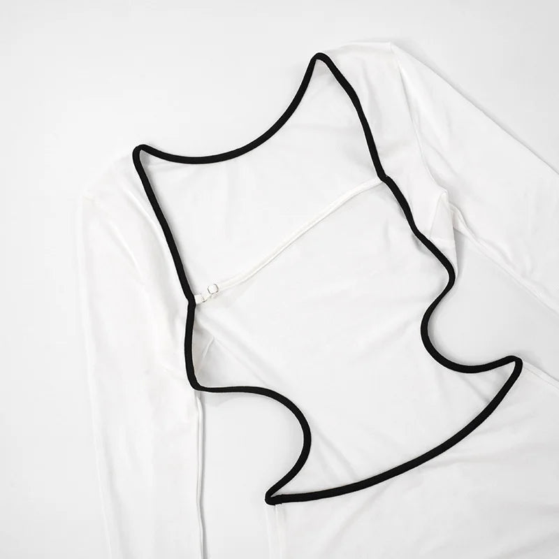 Contrast Trim Side Cut Backless Long Sleeve Mini Dress