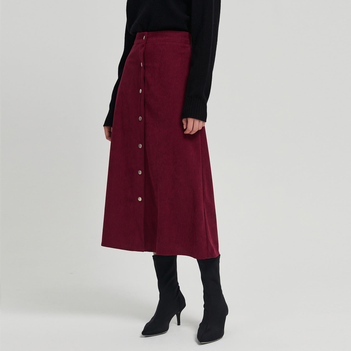 Corduroy Skirt Long Single-breasted High Waist Autumn And Winter Skirt