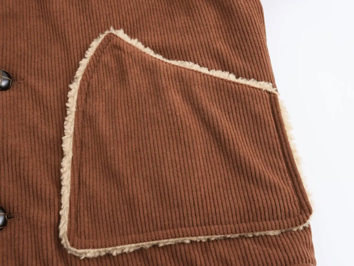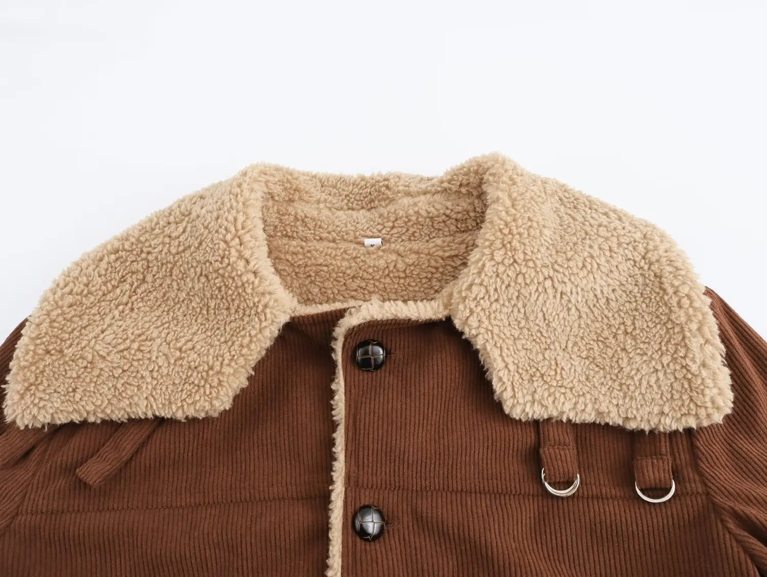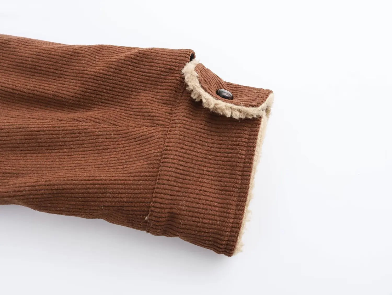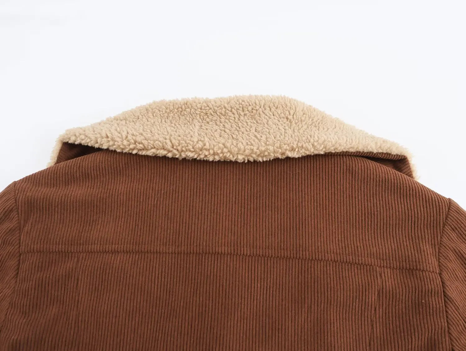 Corduroy Turn-down Collar Fur Lining Jacket Details :