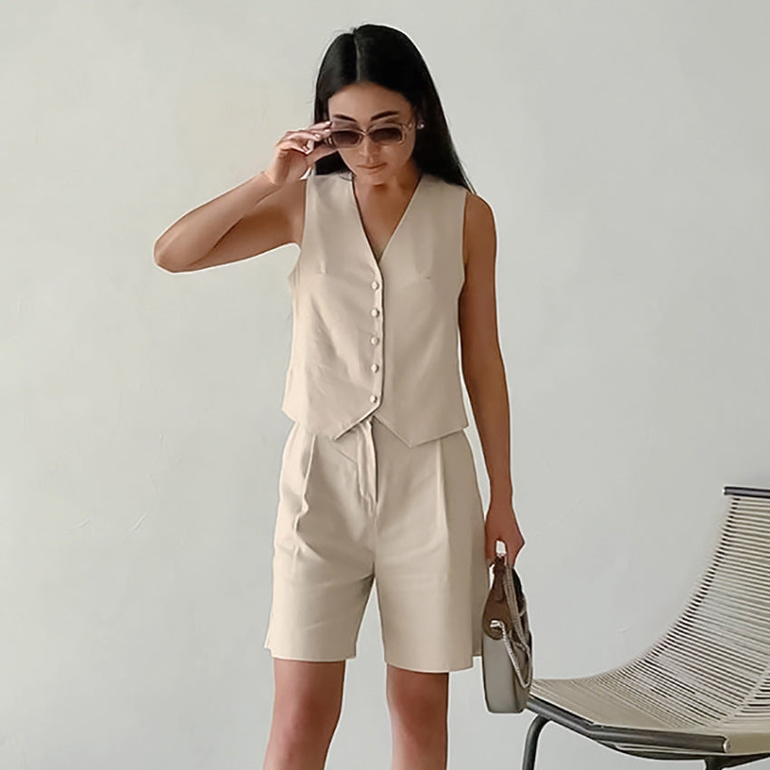 Cotton And Linen Vest Shorts Two-piece Set Loose