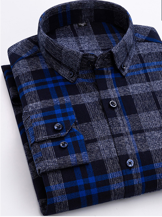 Cotton Plaid Shirt Men's Long-Sleeved Cotton Fleece Shirt