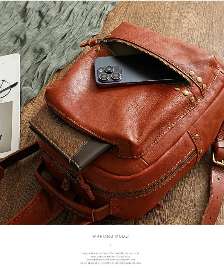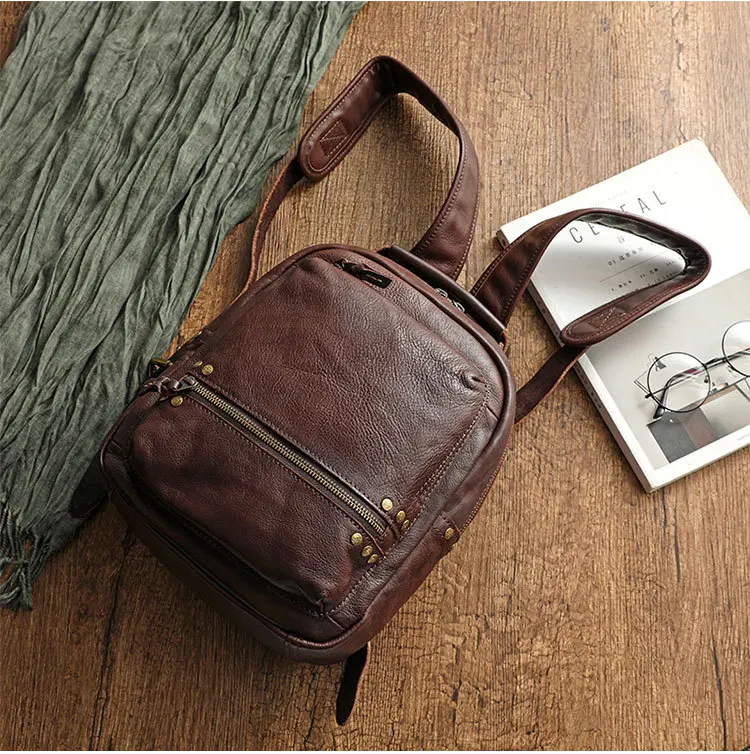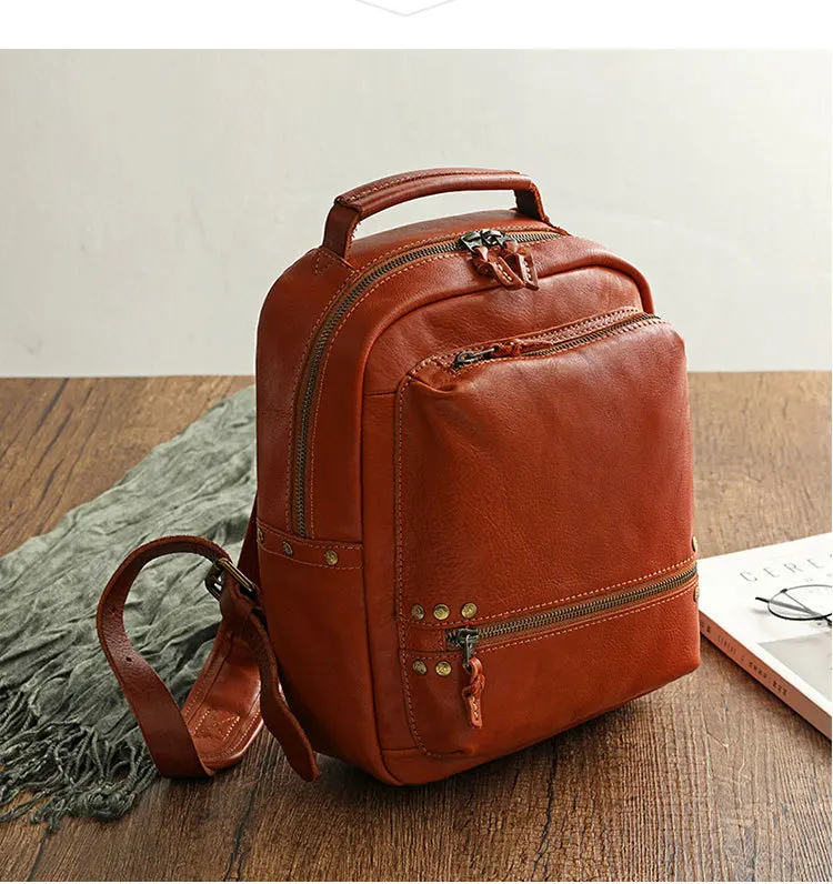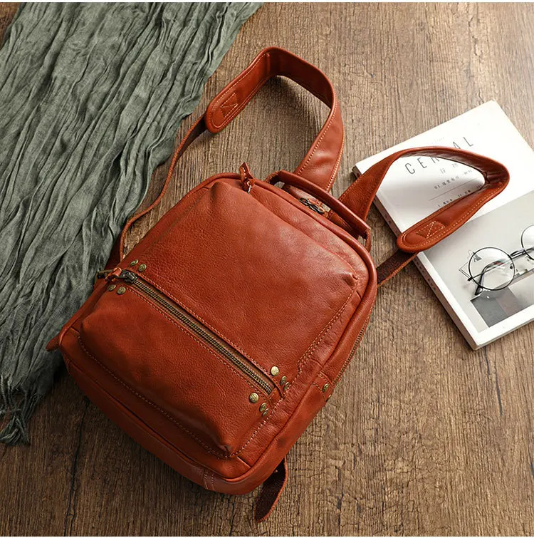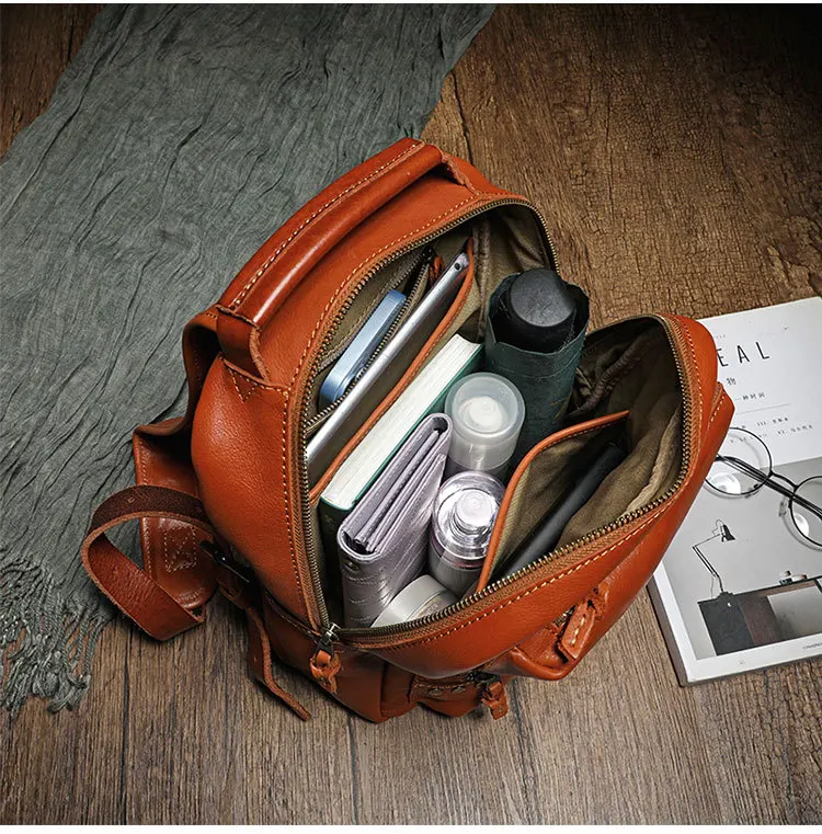 Cowhide Wash Water Wax Polishing Backpack