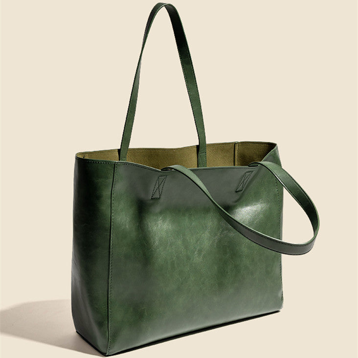 Dark Green Tote Oil Wax Soft Leather Women's Bag Retro Art