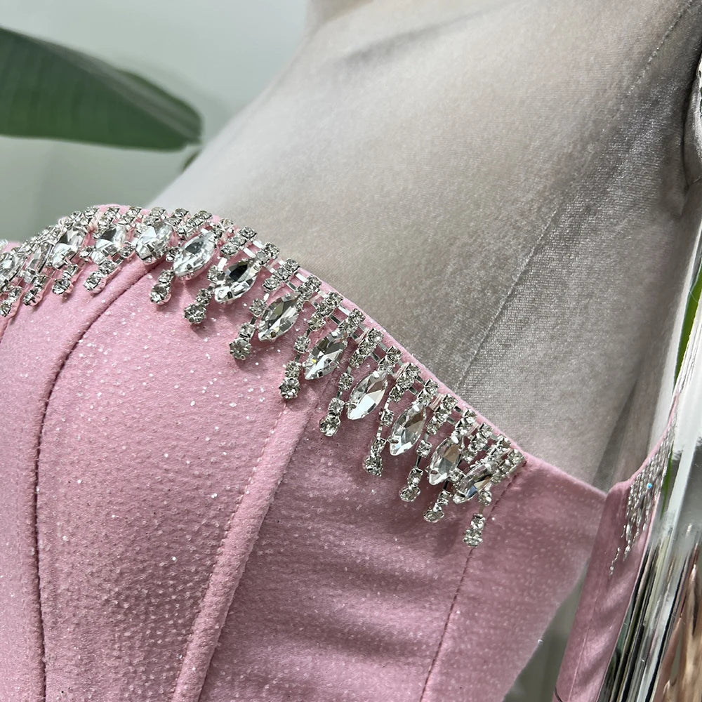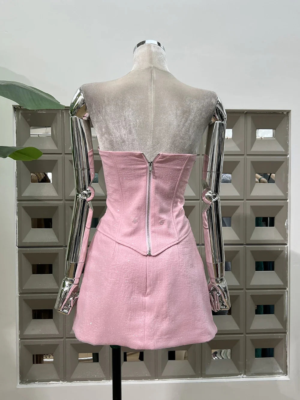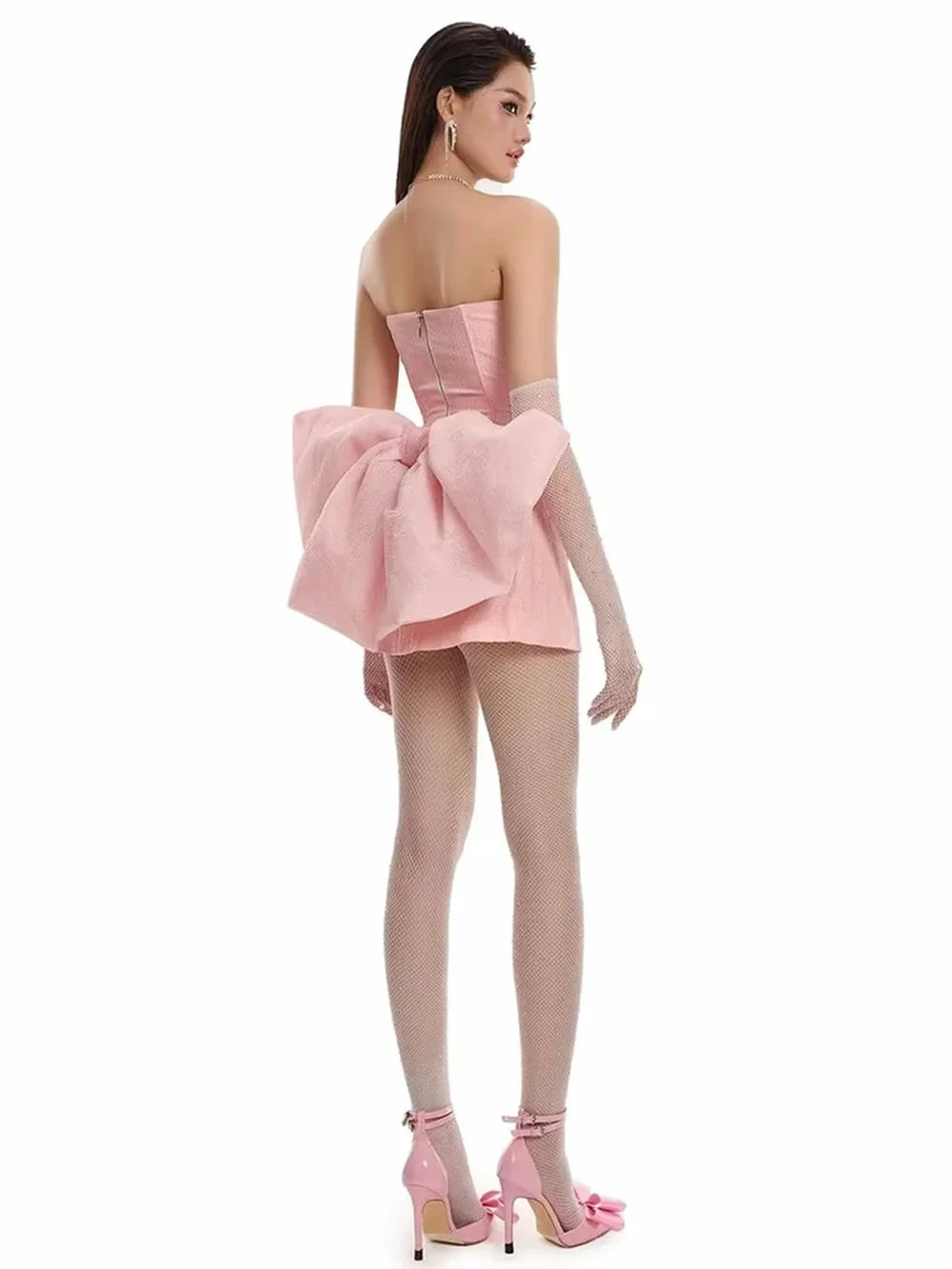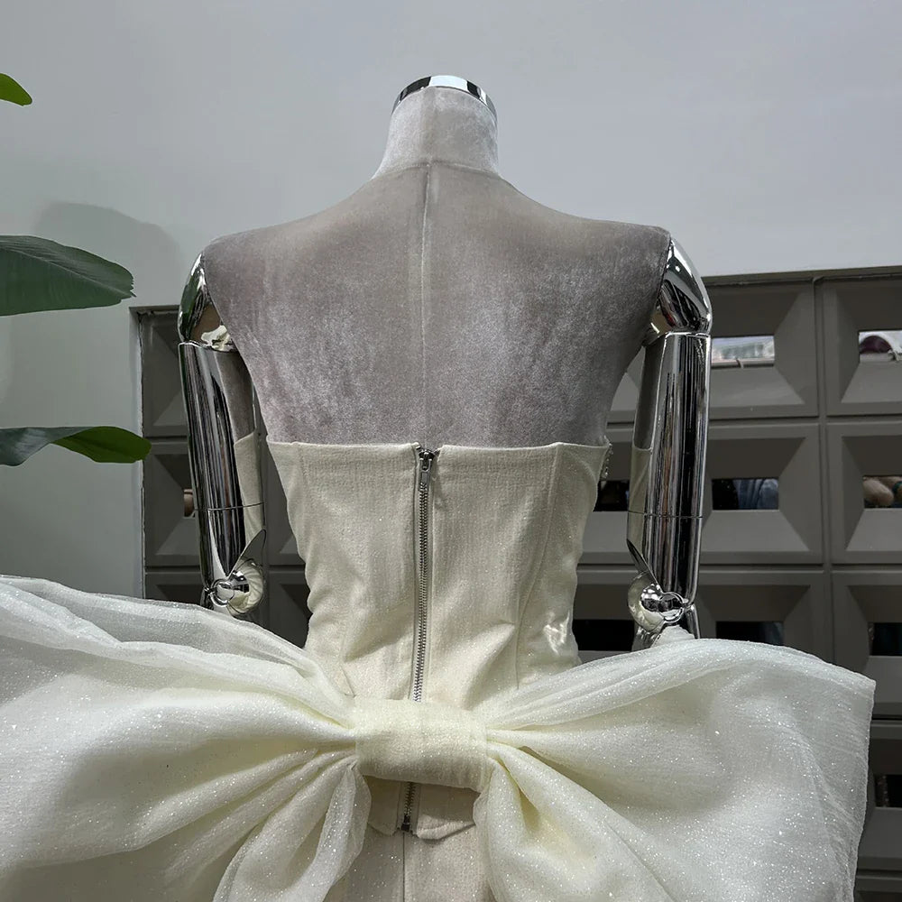 Diamond Strapless Large Bow Corset Top And Mini Skirt Set
