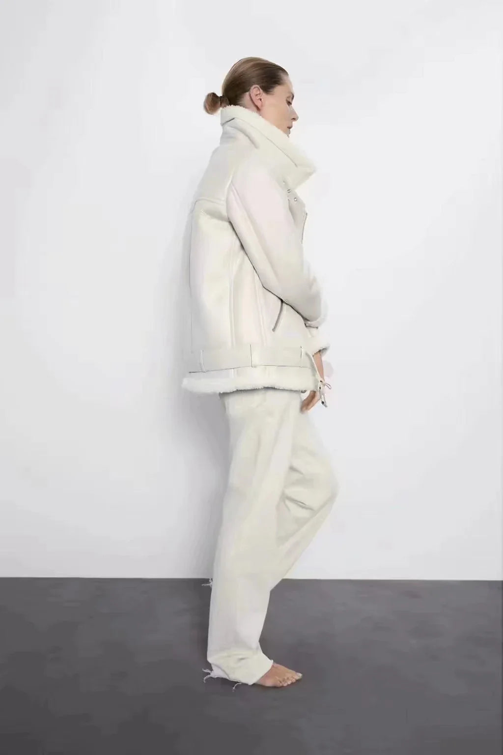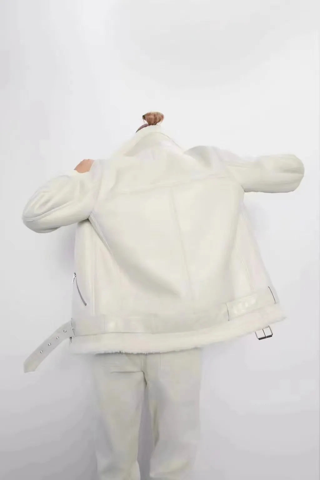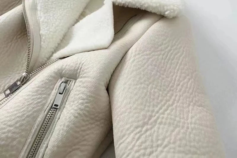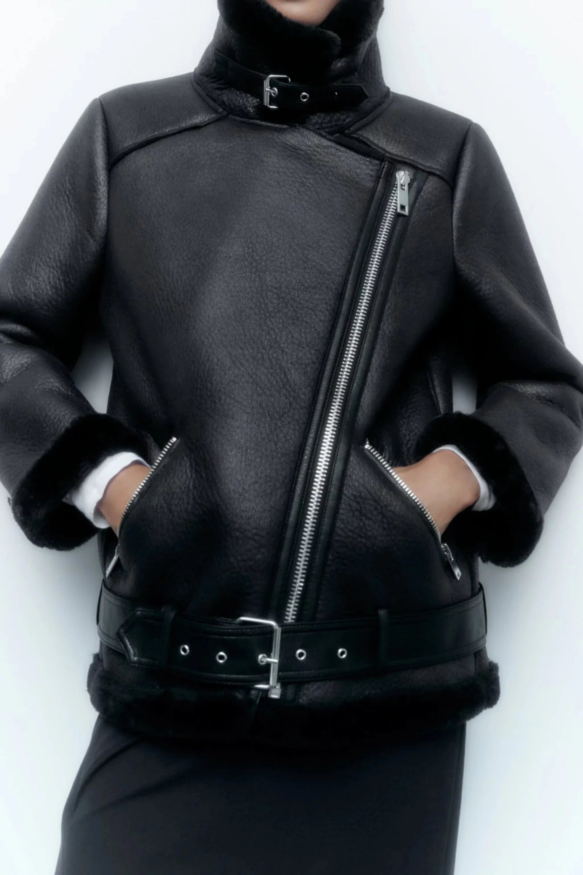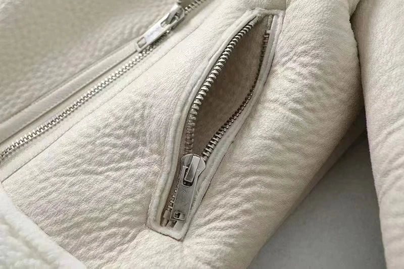 Faux Leather Double-Sided Zipper Biker Jacket Details :
