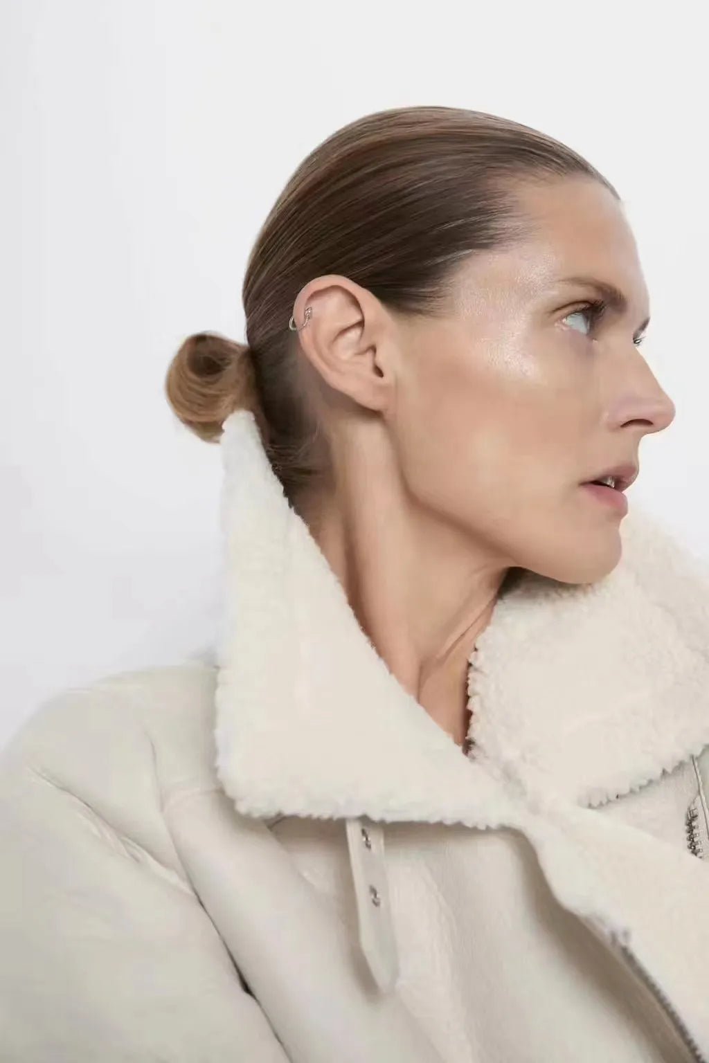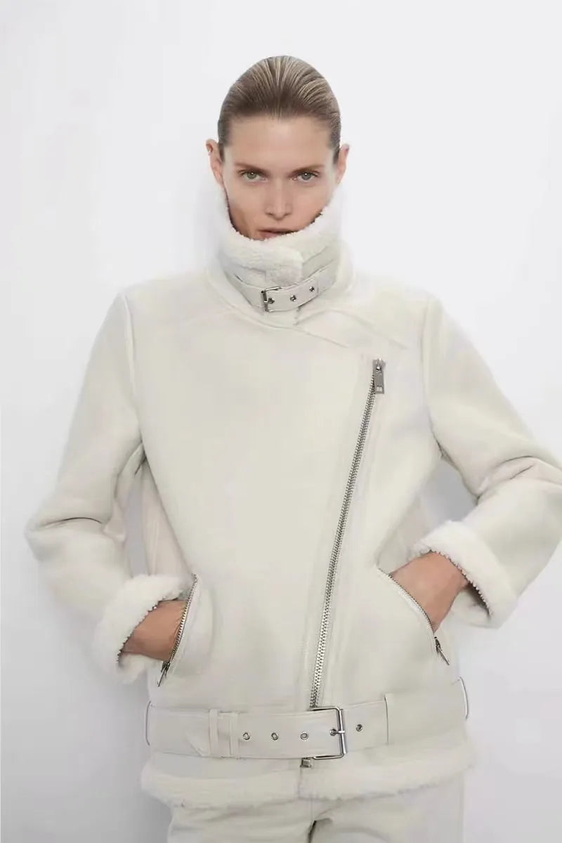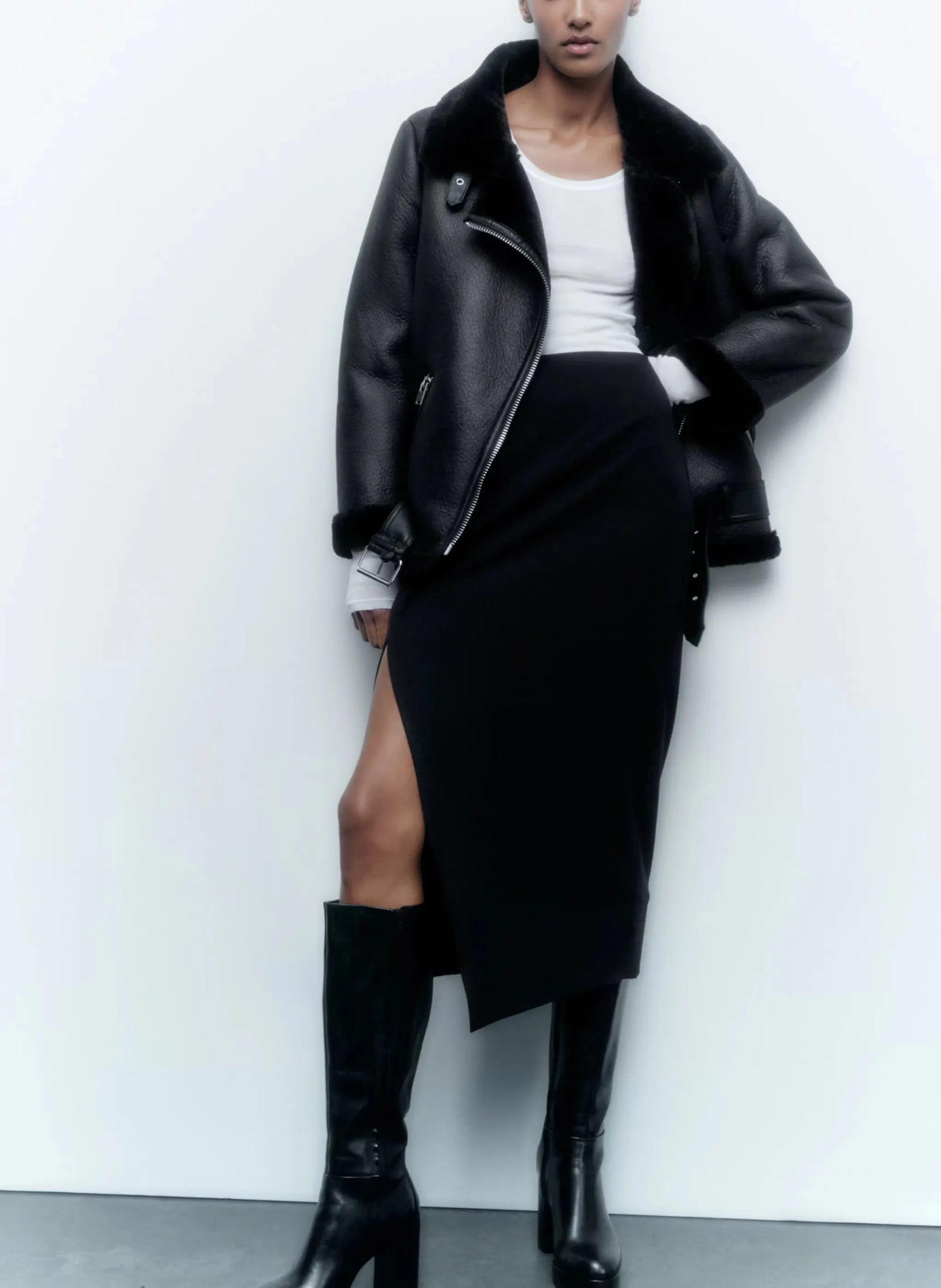Faux Leather Double-Sided Zipper Biker Jacket Details :
