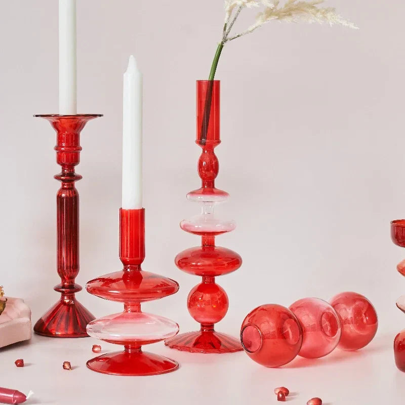 Creative Red Glass Taper Candle Holder Christmas Gift Wedding Table Decoration Home Decoration DryFlower Vase