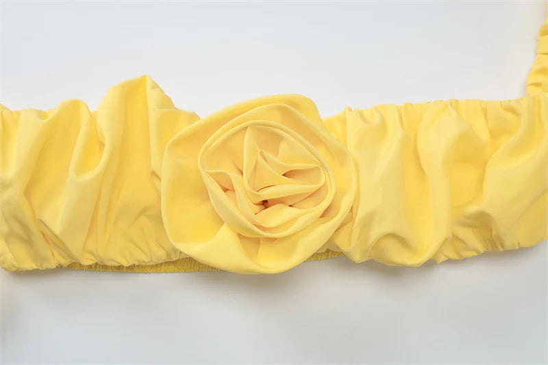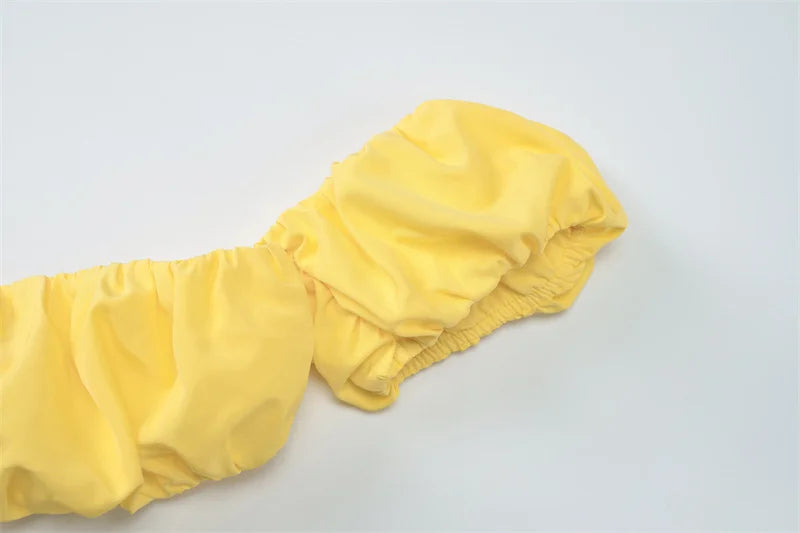 Flower Puff Sleeve Ruffles Crop Top And Maxi Skirt Set