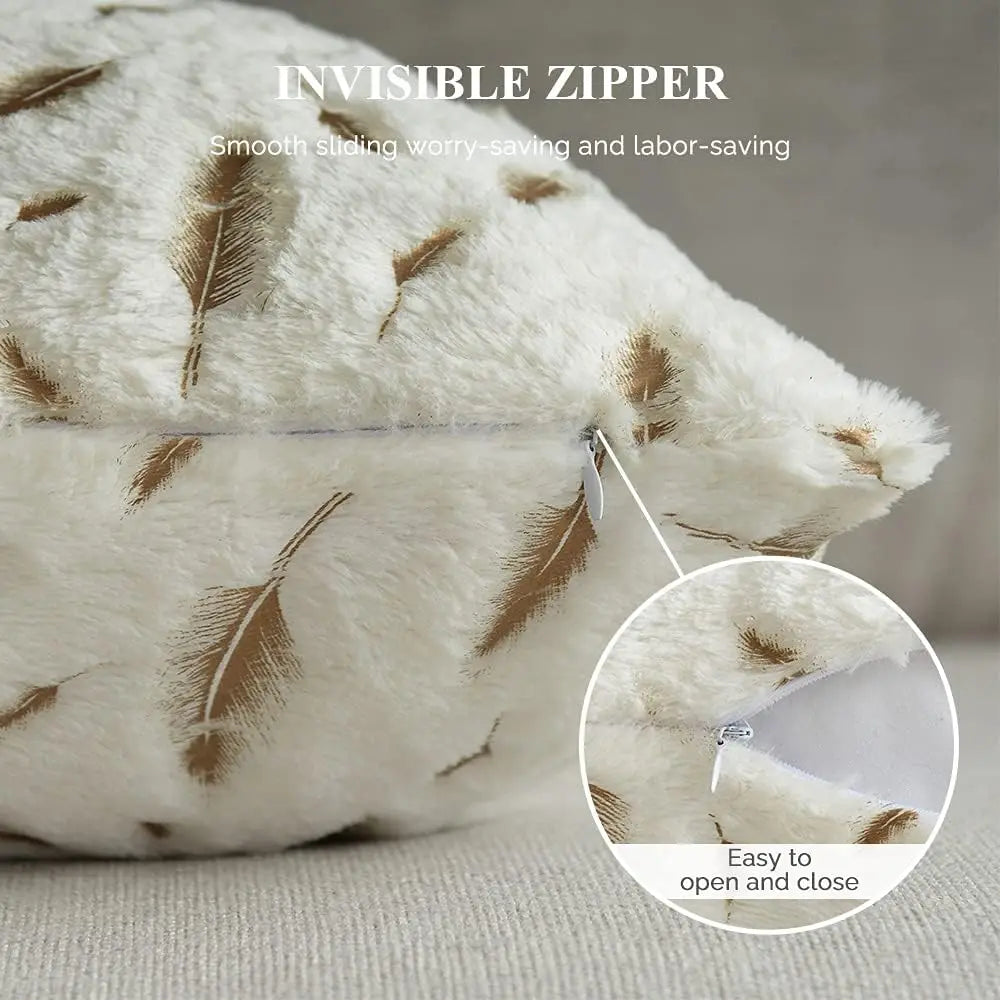 Gold Feather Pillow Covers Decorative Pillows for Sofa Car Plush Christmas Throw Pillows Cover Nordic Cushion Cover 45x45 Velvet