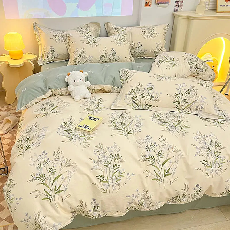 Ins Floral Bedding Set with Duvet Cover Flat Sheet Pillowcases New Summer No Filler Full Queen Size Hotel Home Soft Bed Linens