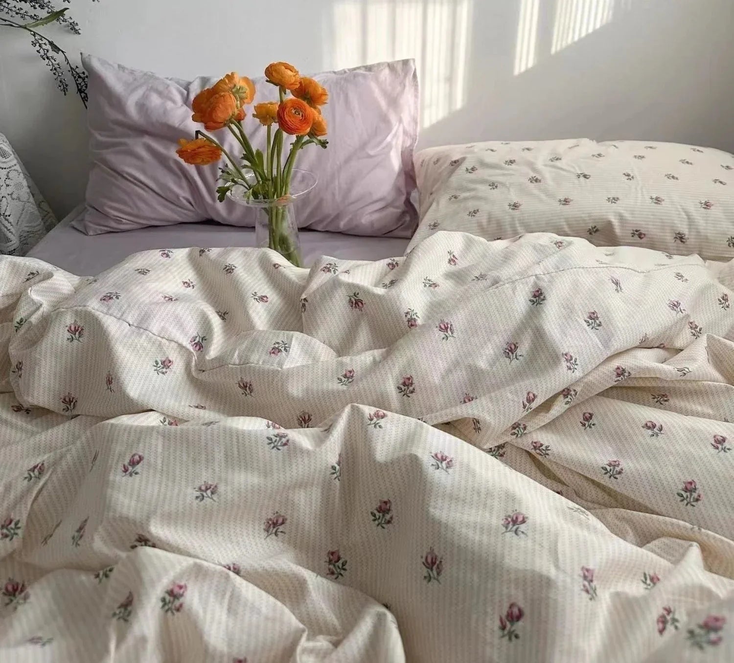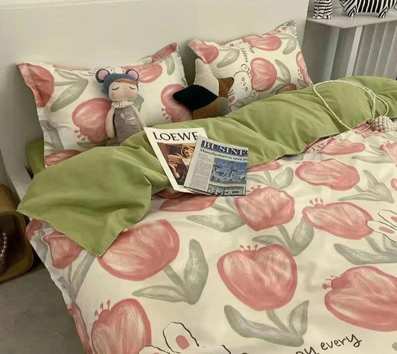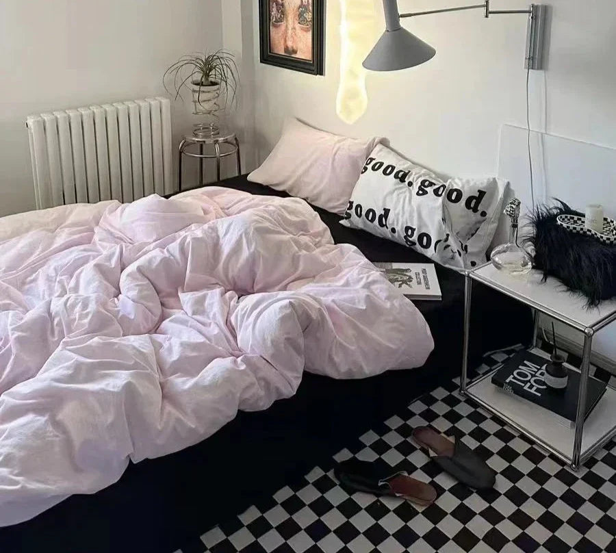 INS Pink Solid Color Bedding Set Girls Boys Single Double Size Flat Sheet Duvet Cover Pillowcase Bed Linens Home Textile