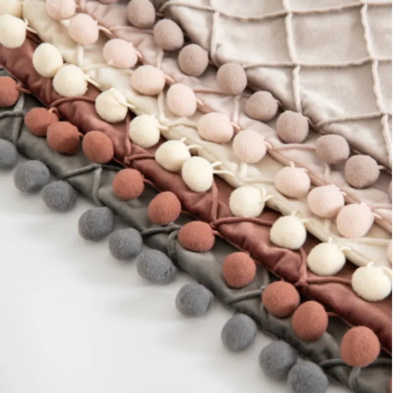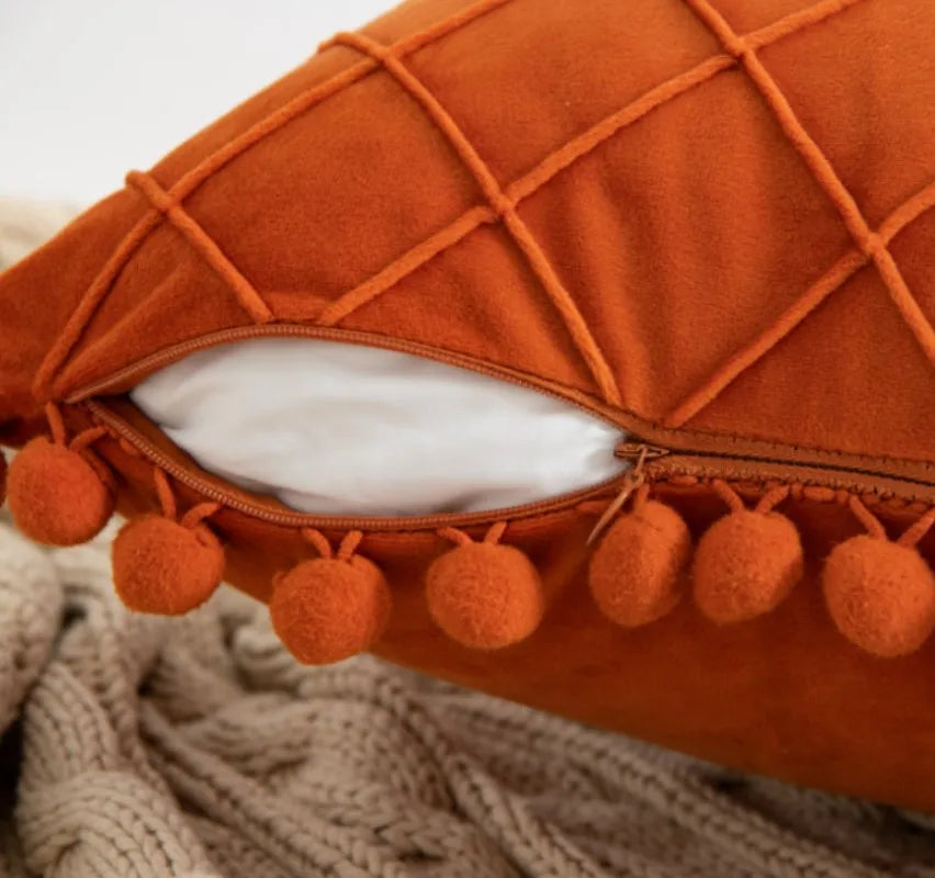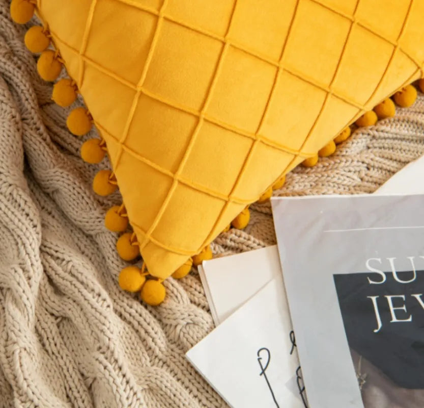 Inyahome Velvet Pillowcase Cover with Pompom Ball Blue Green Cushion Cover Bedroom Sofa Decoration Pillow Cases 35x50cm/50x50cm