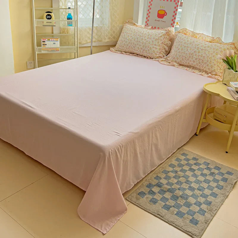 Korean Princess Style Floral Ruffles Bedding Set Washed Cotton Skin-friendly Soft Duvet Covers Set Bed Sheet Pillowcases 3/4Pcs