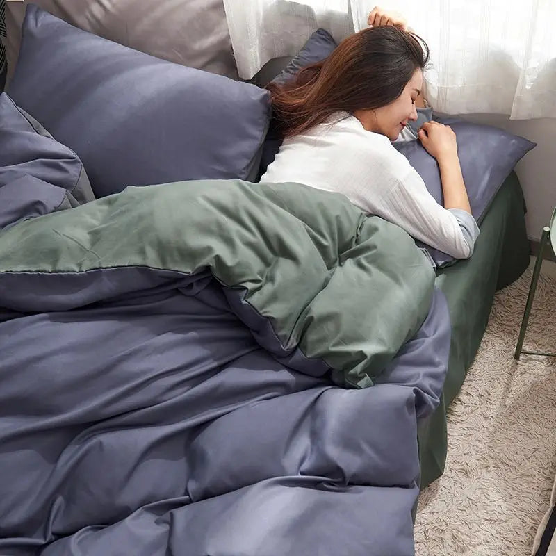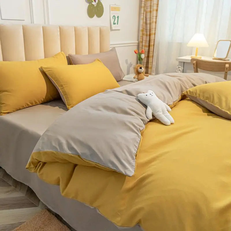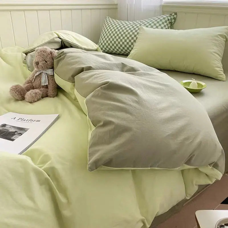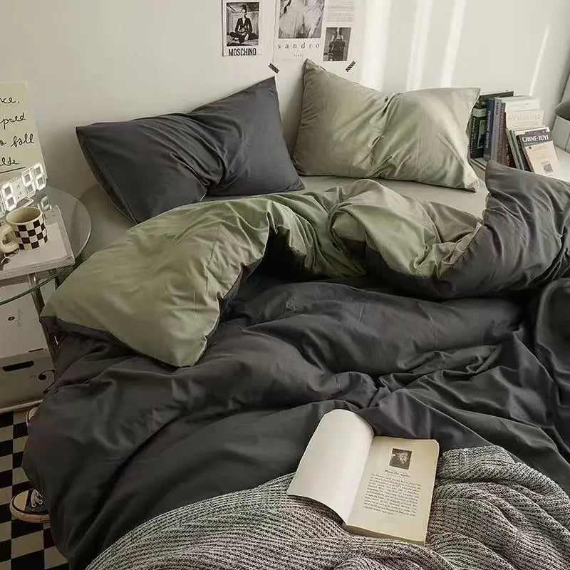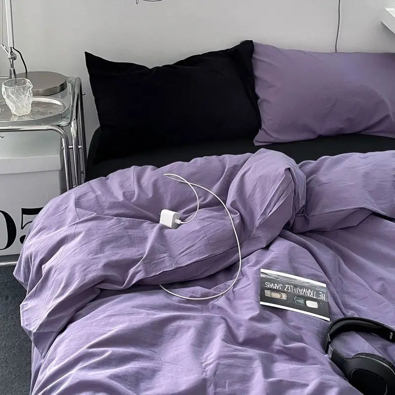 Korean Solid Purple Bedding Set Soft Flat Sheet Duvet Cover Pillowcase Polyester Bed Linen Twin Queen Full Size Quilt Cover Set