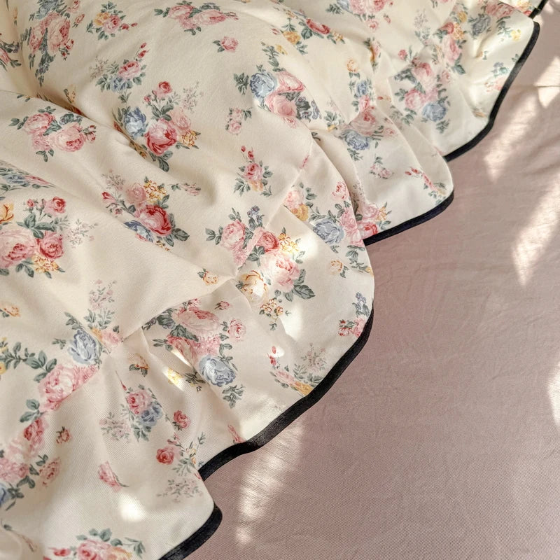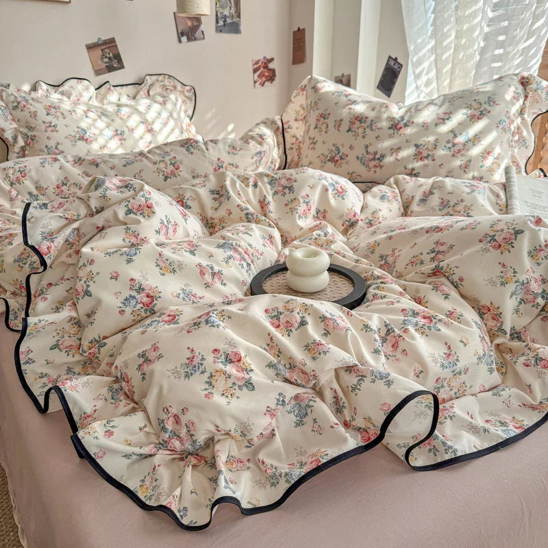Korean Style Floral Ruffles Knitted Double Yarn Bedding Set Double King Queen Size Duvet Cover Flat/Fitted Bed Sheet Pillowcases