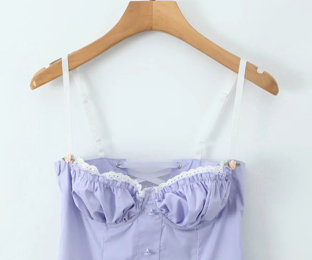 Lace Bustier Patchwork Cami Lace Up Mini Dress
