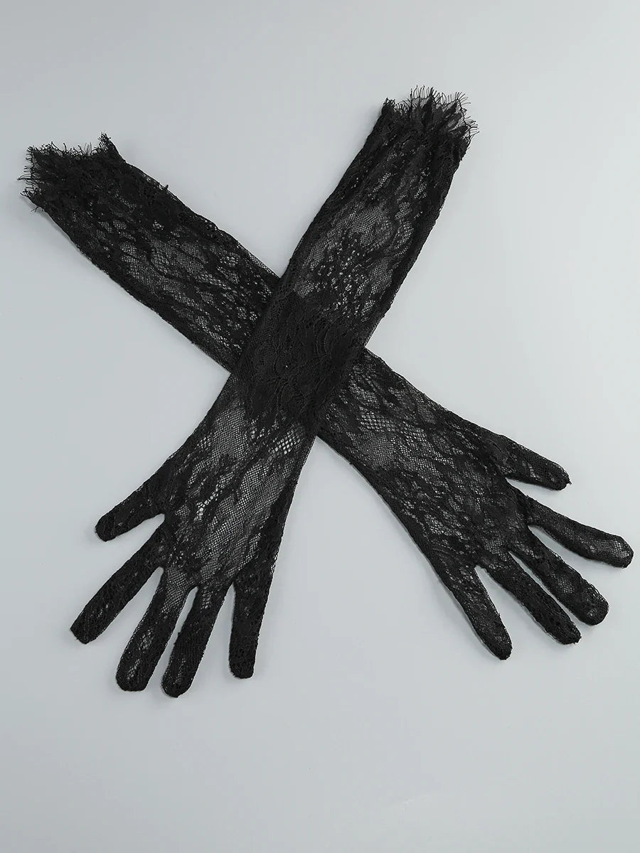 Lace Strapless Corset Gloves Mini Dress