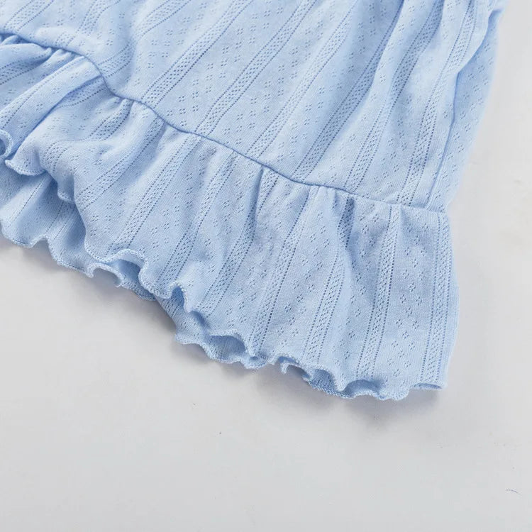 Lace-Up Ruffled Crop Top And Shorts Two Piece-Set