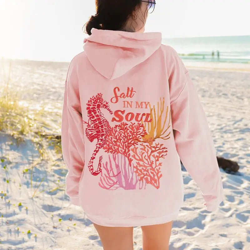 Dive into cozy style with our Letter Sea Embroidered Hoodie. a unique addition for any adult wardrobe. This comfortable pullover features distinctive letter and sea-themed embroidery. adding an artistic and adventurous touch to its design. With a relaxed loose fit and a classic hooded collar. it's perfect for effortless. everyday wear.