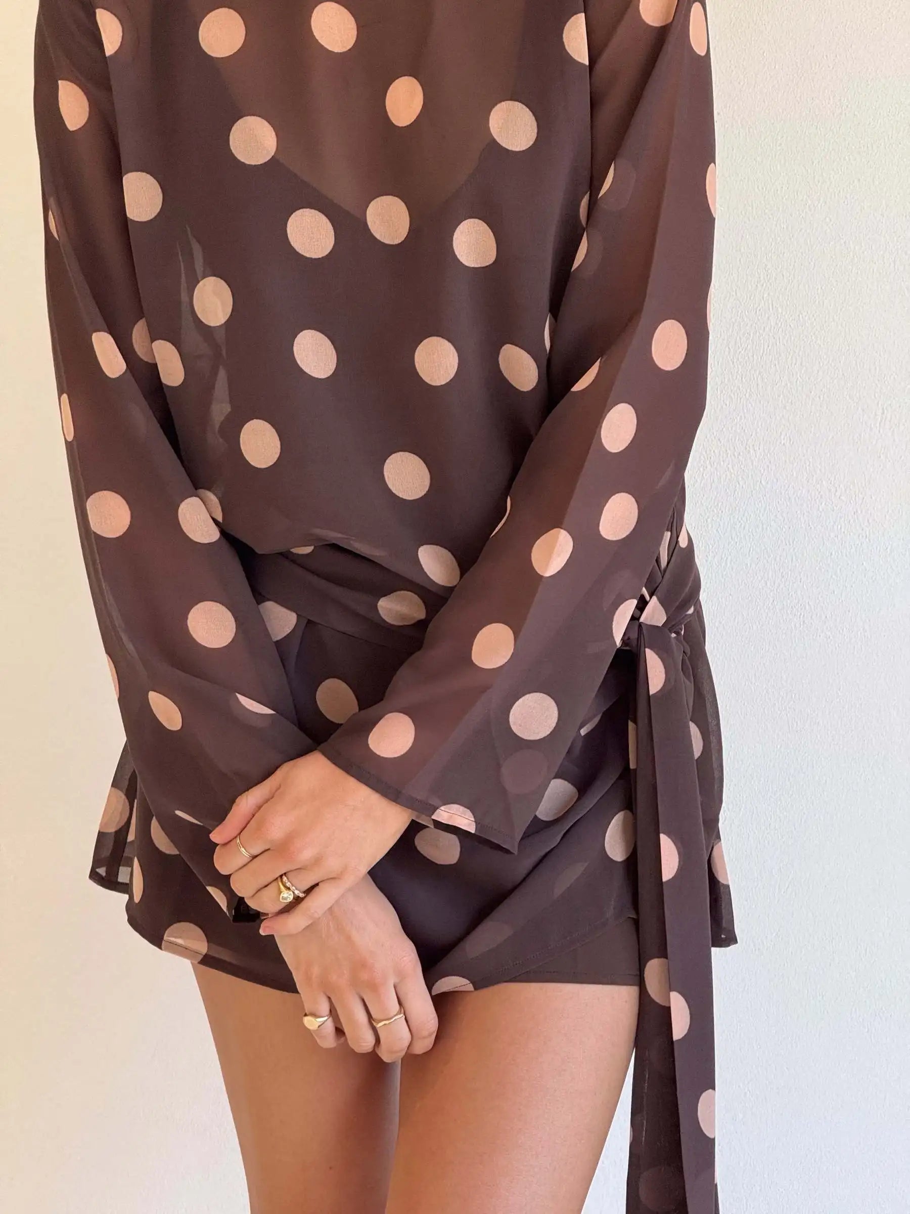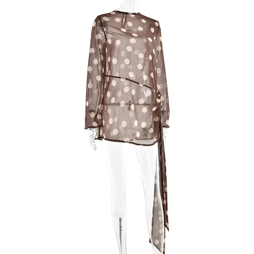 Long Sleeve Chiffon Ribbon Mesh Mini Dress