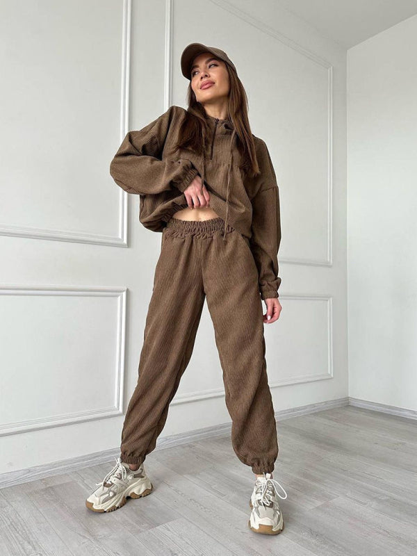 Long Sleeve Hooded Zipper Women's Loungewear Two Piece Set