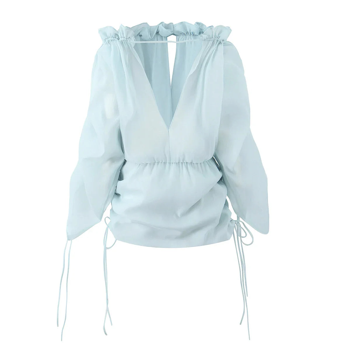 Mesh Long Sleeve Drawstring Chiffon Off Shoulder Mini Dress