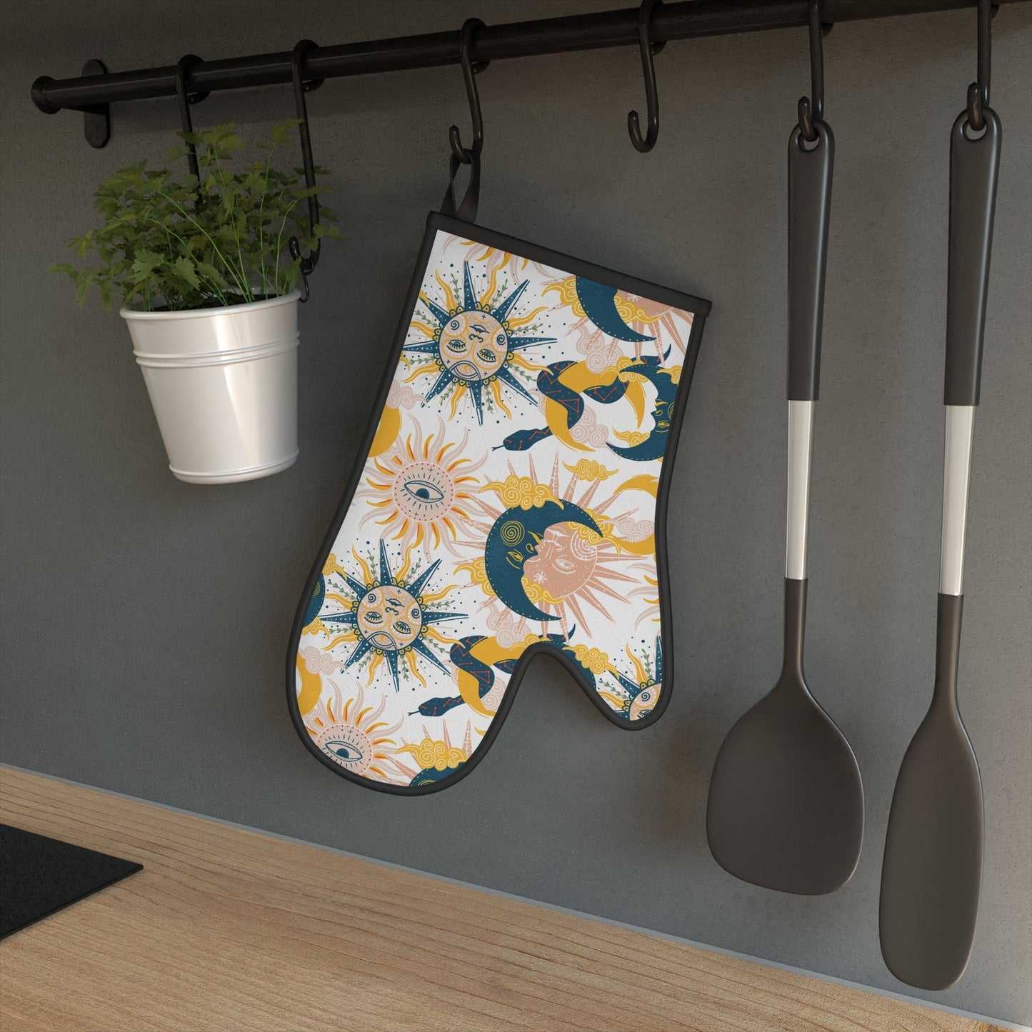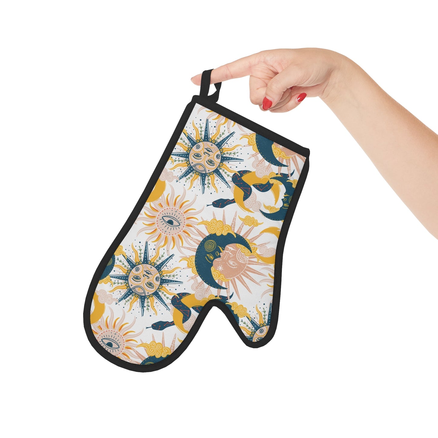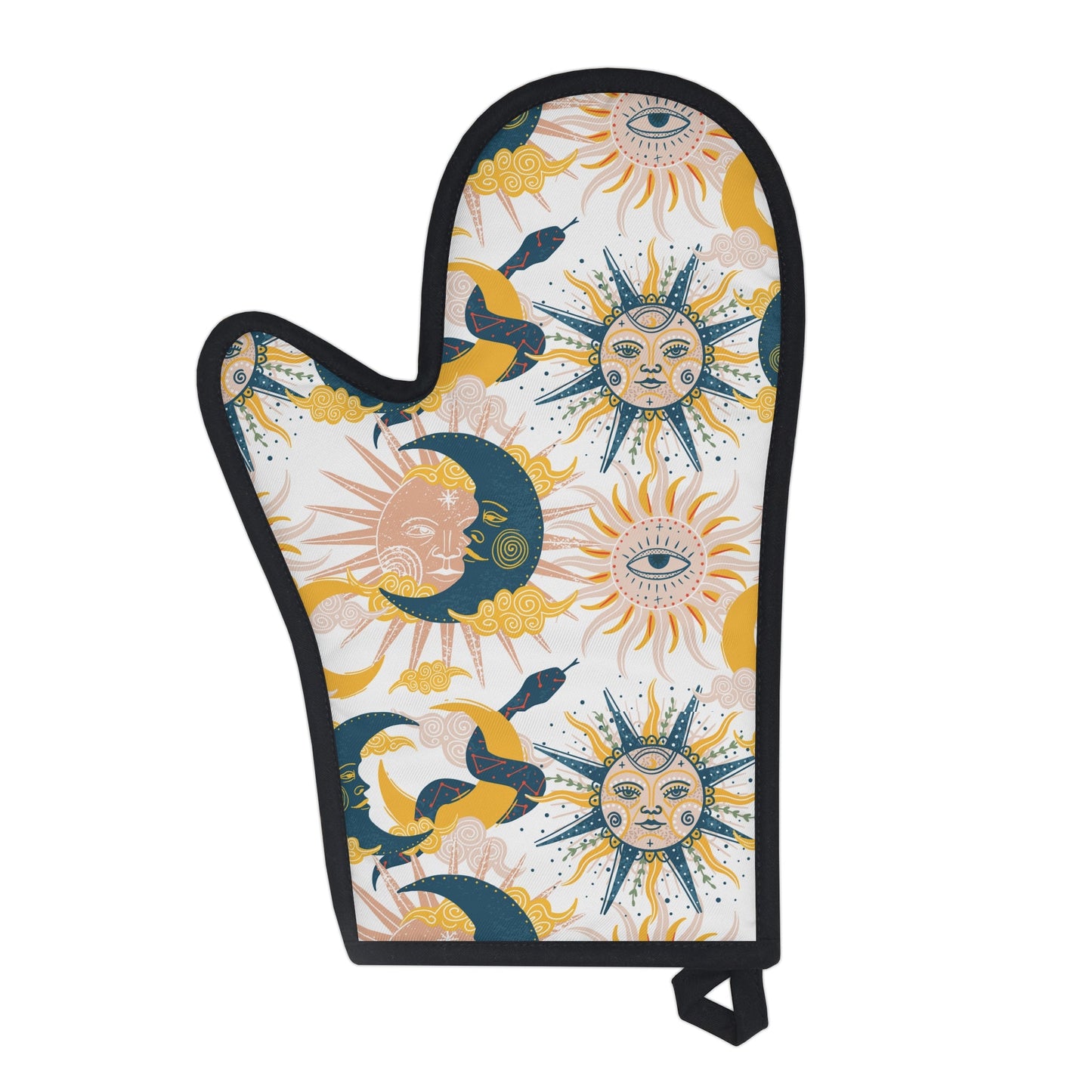 Mystical Sun and Moon Oven Glove, Blue and Yellow