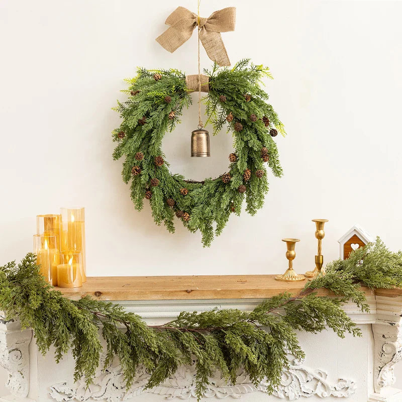 New Christmas Bells Wreath Linen Bow Natural Material Home Decorations Christmas Wreath