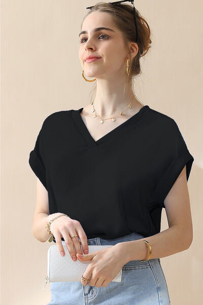 Ninexis V-Neck Trim Rolled Short Sleeve Shirt