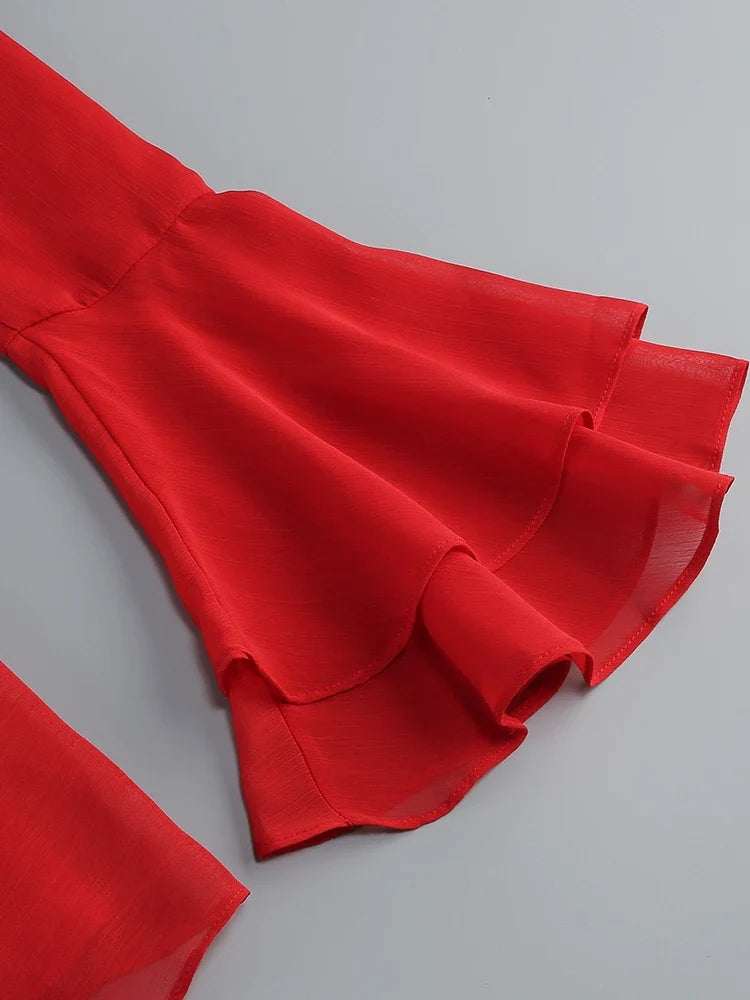 Off-shoulder Long Flare Sleeve Bow Mini Dress