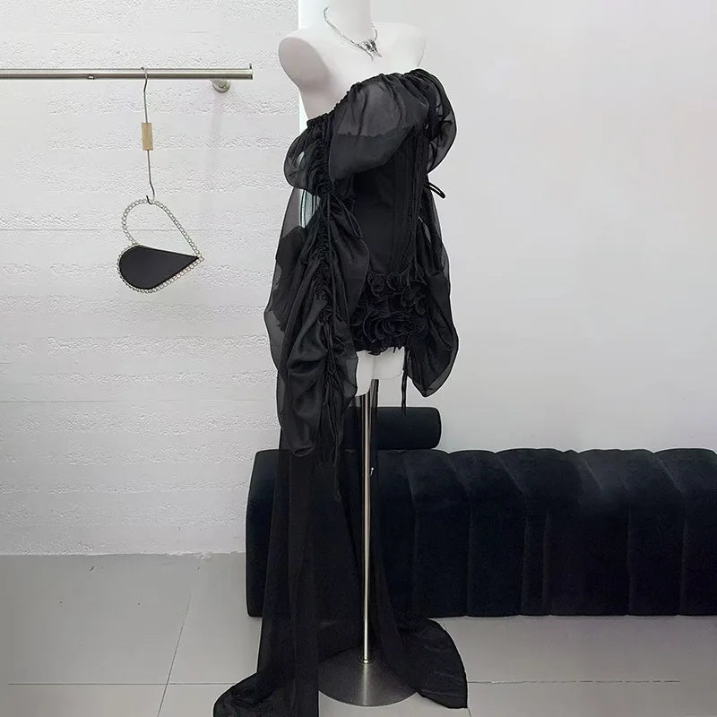 Off-Shoulder Long Sleeve Ruffles Mini Dress