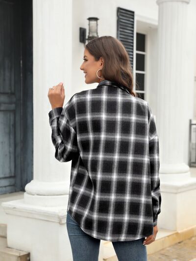 Plaid Button Up Pocketed Shirt