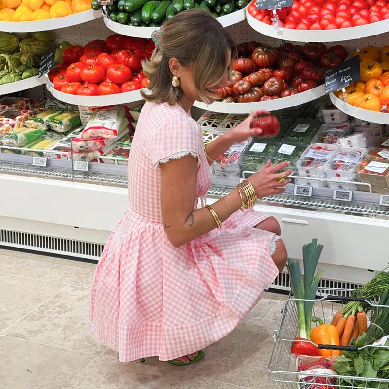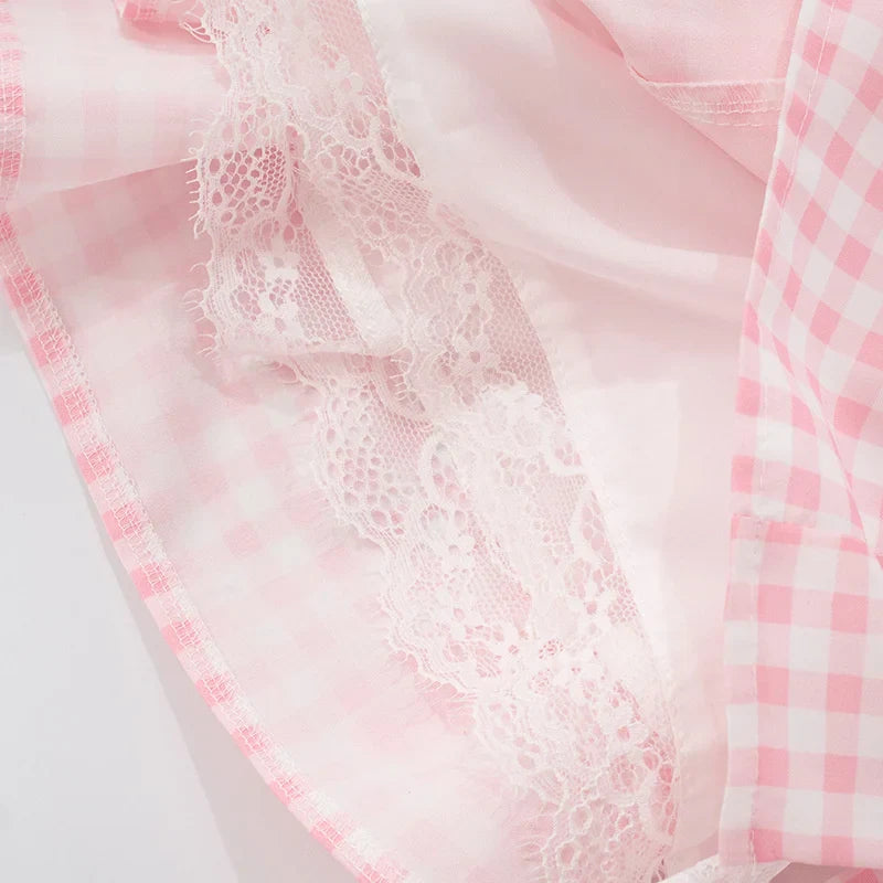 Plaid Print Puff Sleeve V-Neck Bow Flare Mini Dress