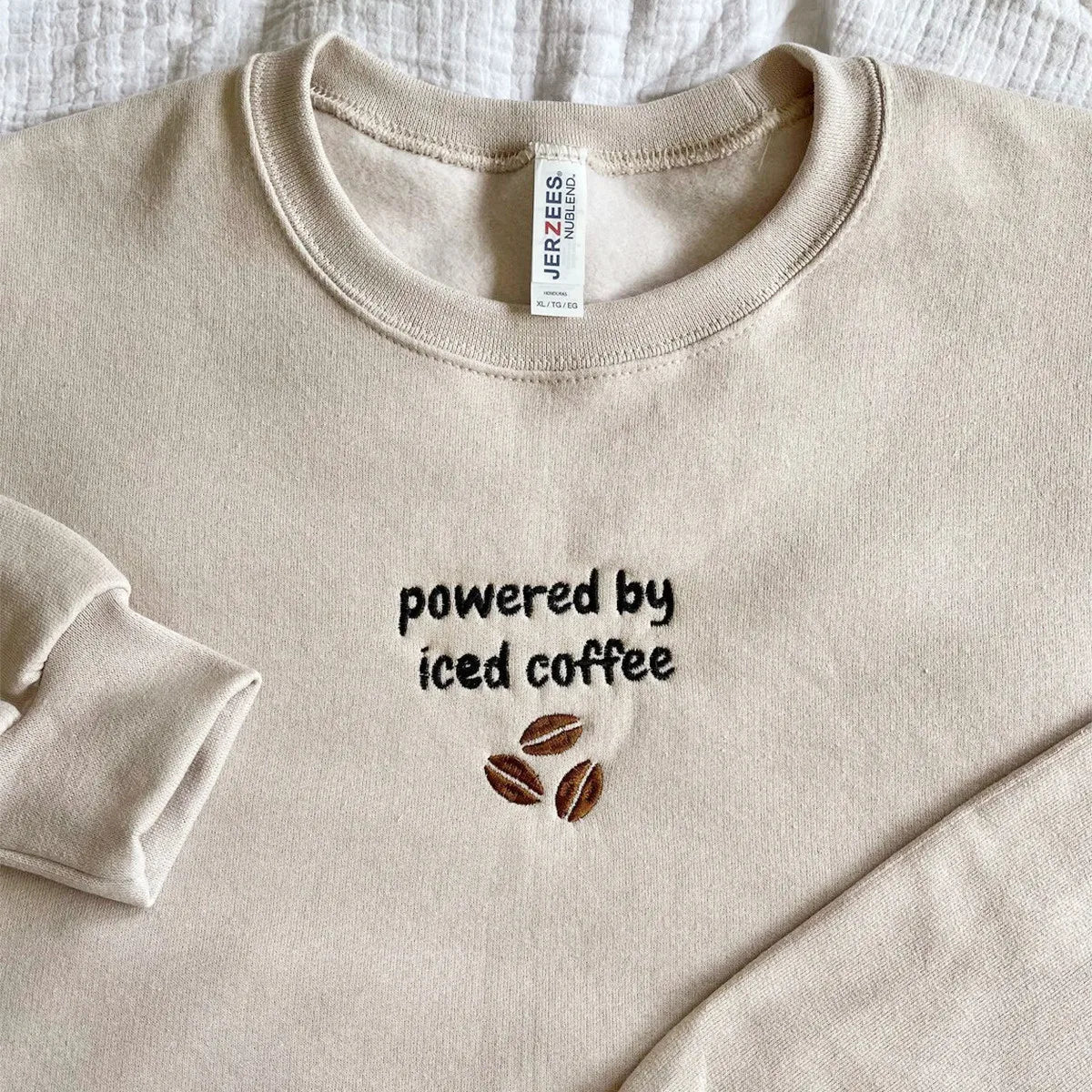 Powered By Iced Coffee Embroidered Crewneck Sweatshirt Details :