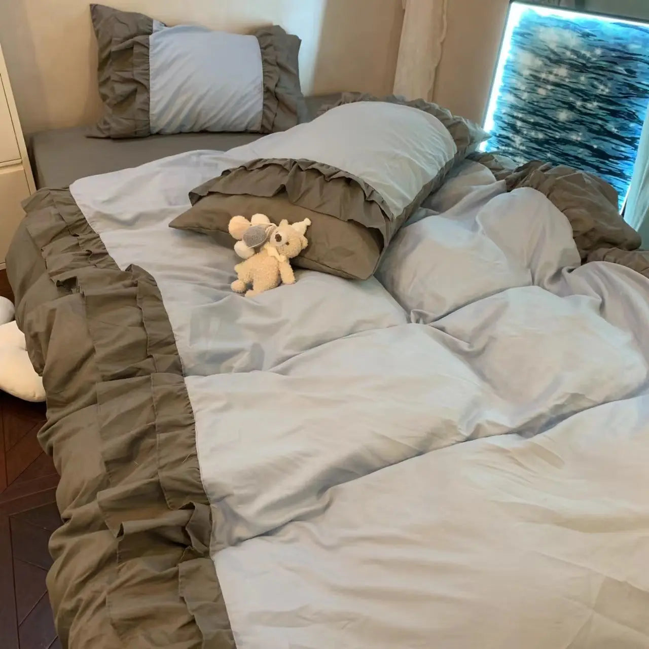 Princess Style Bedding Set No Filling Korean Romantic Ruffles Blue Purple Single Double Queen Size Duvet Cover Sheet Pillowcase