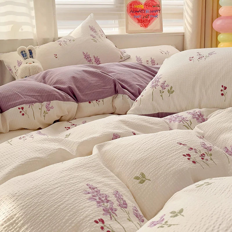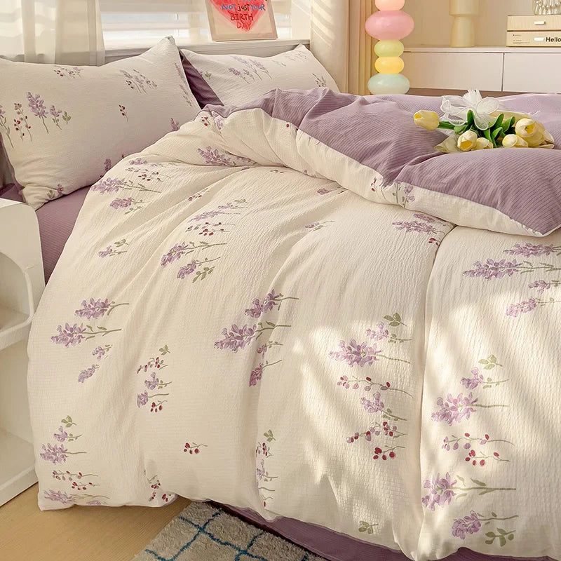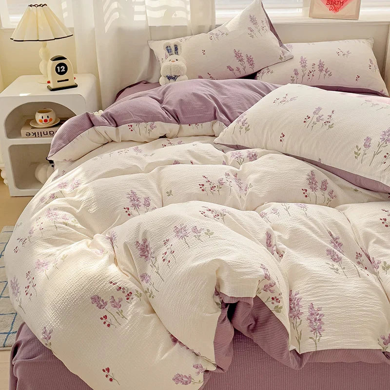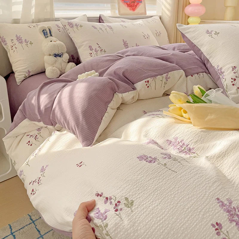 Purple Lavender Washed Cotton For Boys Girls Ins Korean Style with Flat Sheet Pillowcase No filler Queen Double Home Bed Linens